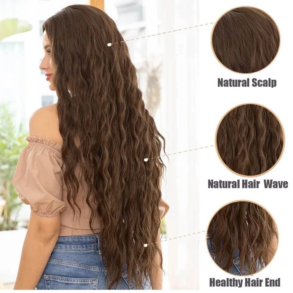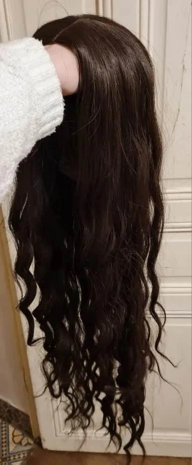 Dark brown long curly synthetic wig