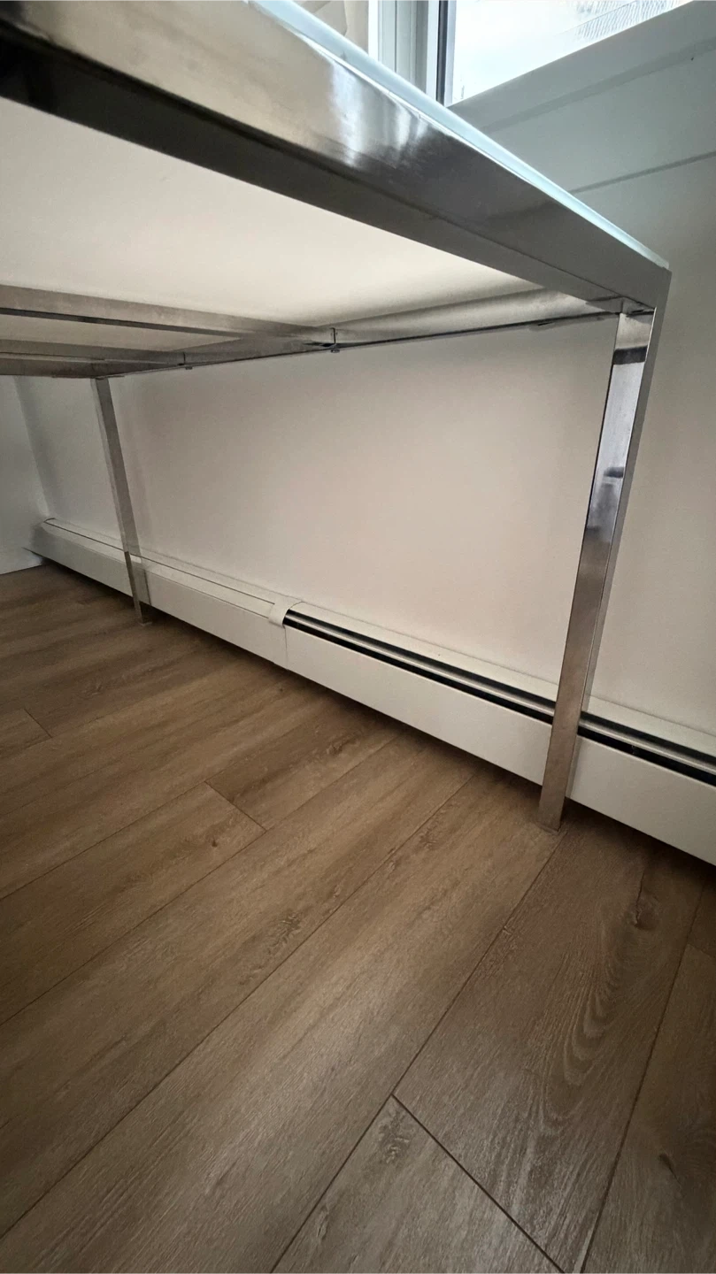Selling a modern dining table with a white glass top and a chrome frame. The table is in great condition and would look great in any dining room or kitchen!