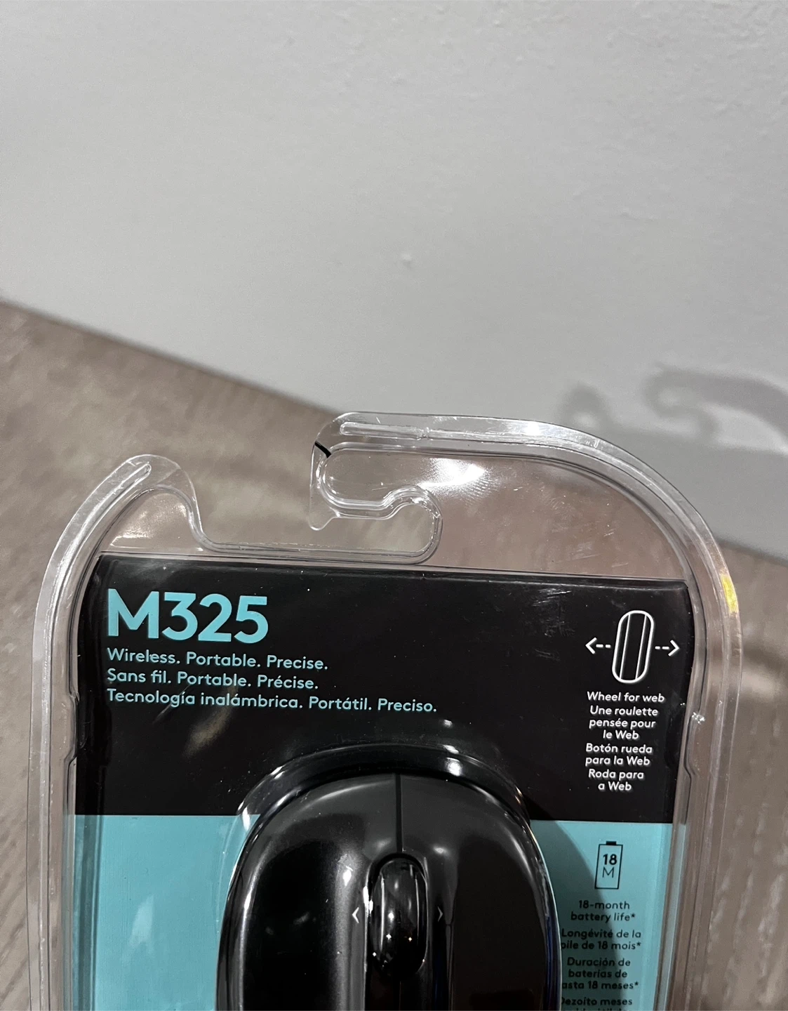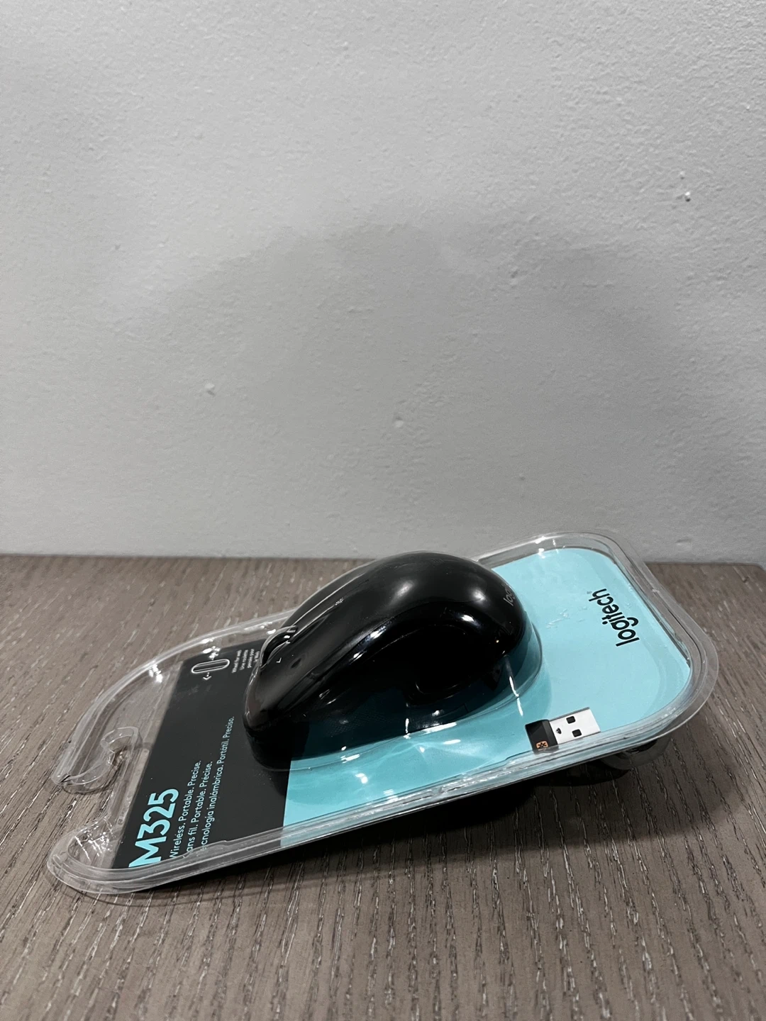Selling a brand new Logitech M325 wireless mouse in black! It's still in its original packaging. This mouse is wireless, portable, and precise. It also has a wheel for web navigation.