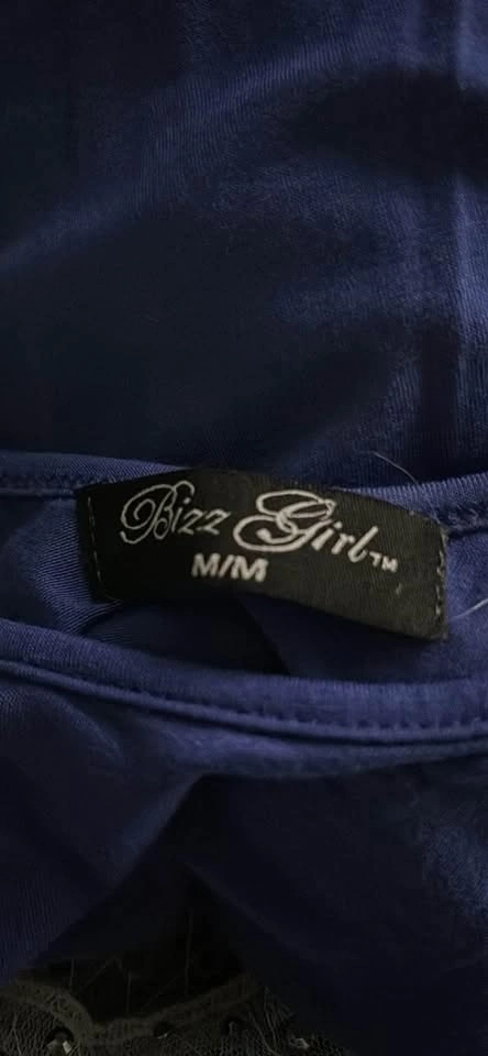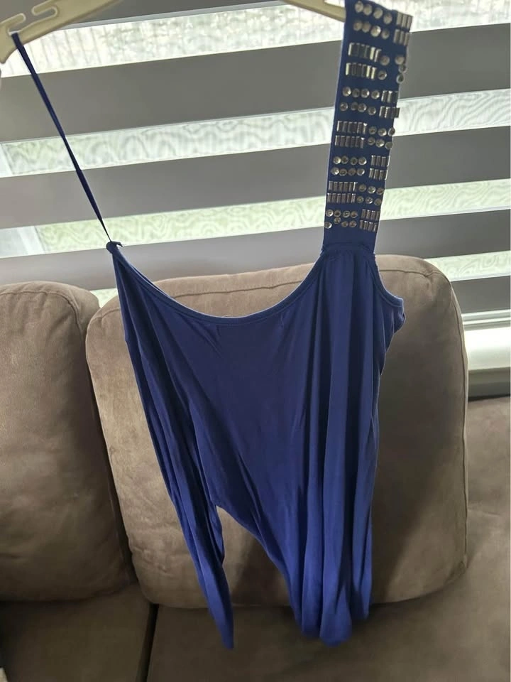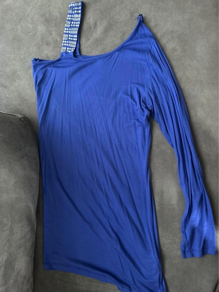 Blue one long sleeve shirt with sparkles on the upper side shoulder level. Could be use as a shirt or a dress depending on person’s height. Used only one time. Medium women size.