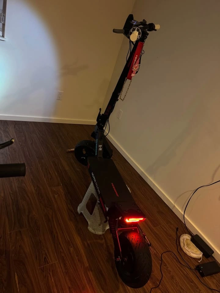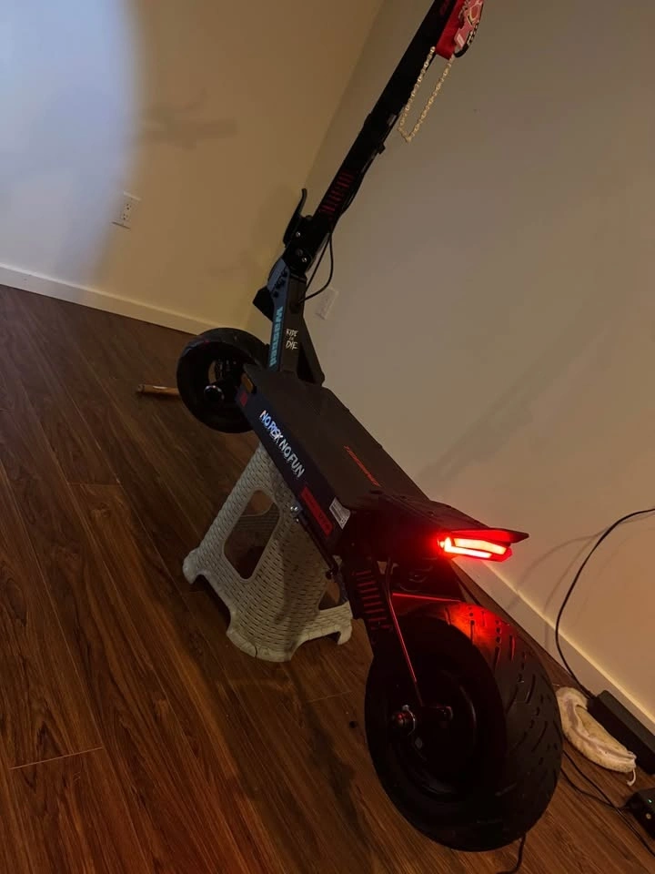 the about 300 kmh on the scooter it will go up cuz I use it once in a while scooter comes with crash pads pro taper grips brake lever grips and some stickers on range about 60kmh at full throttle I have hit speeds up to 84 kmh
