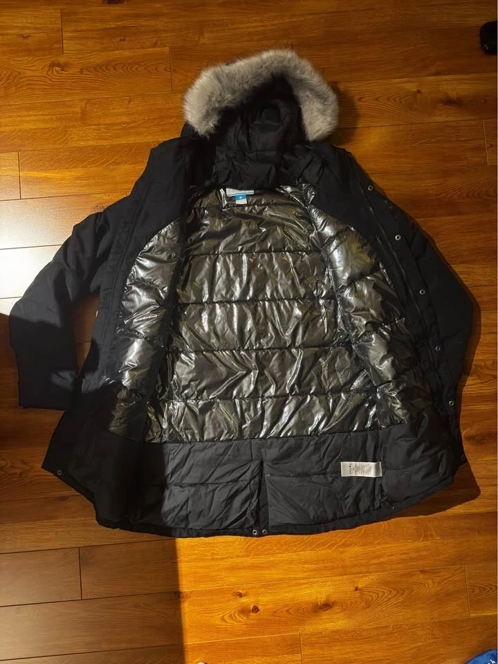 Columbia men’s winter parka with 550-fill down insulation, size Large, black. Worn for about two winters in Toronto and in excellent condition with no visible wear. Very warm and well-constructed.