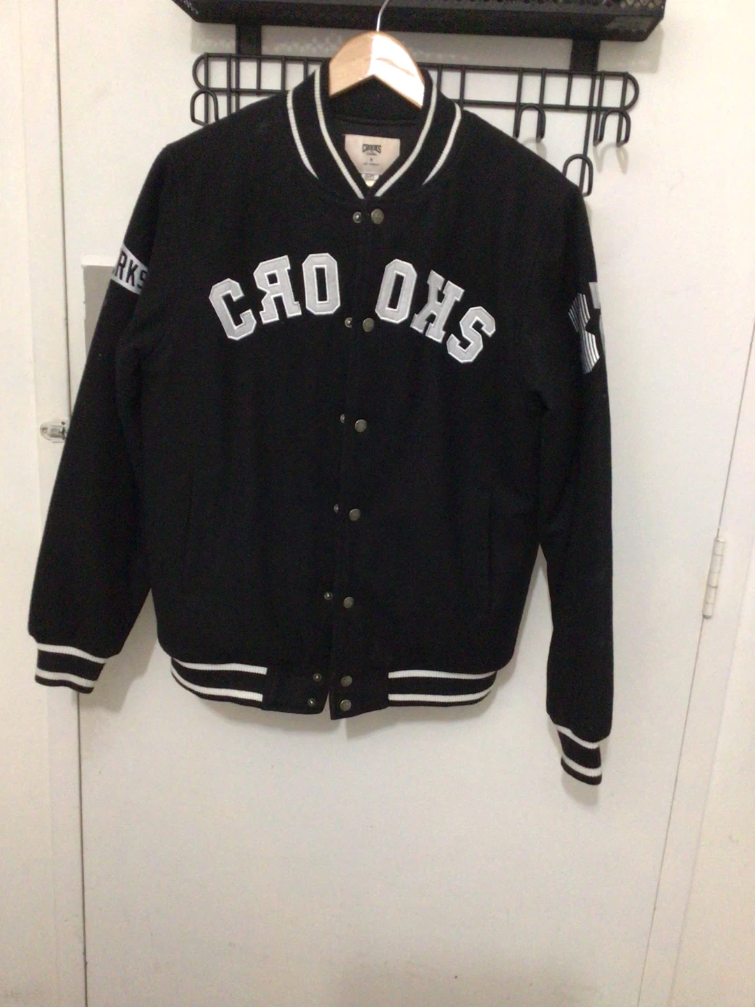 Selling a Crooks & Castles varsity jacket in black! It's in great condition and perfect for adding a bit of style to your wardrobe. The jacket features the brand's logo and classic varsity design elements. A cool piece for any casual outfit