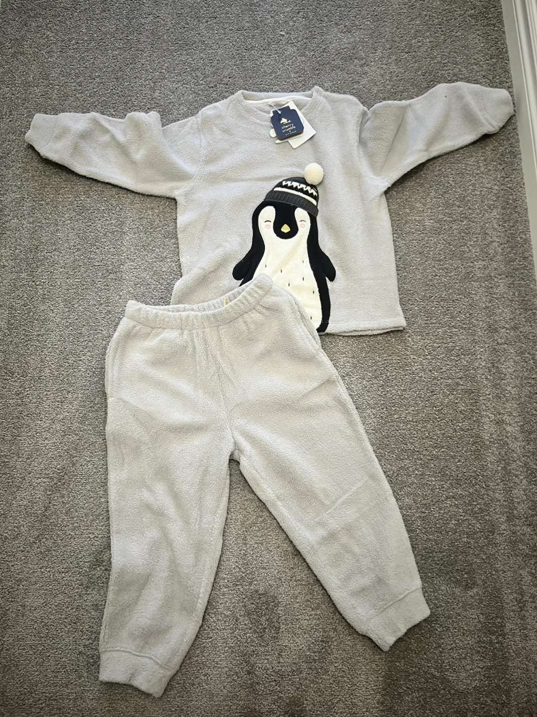 Super cute and cozy Cherry Crumble pajama set for kids! Features an adorable penguin design. The size is 5Y, which fits kids around 4-5 years old. Perfect for keeping your little one warm and comfy during the colder months