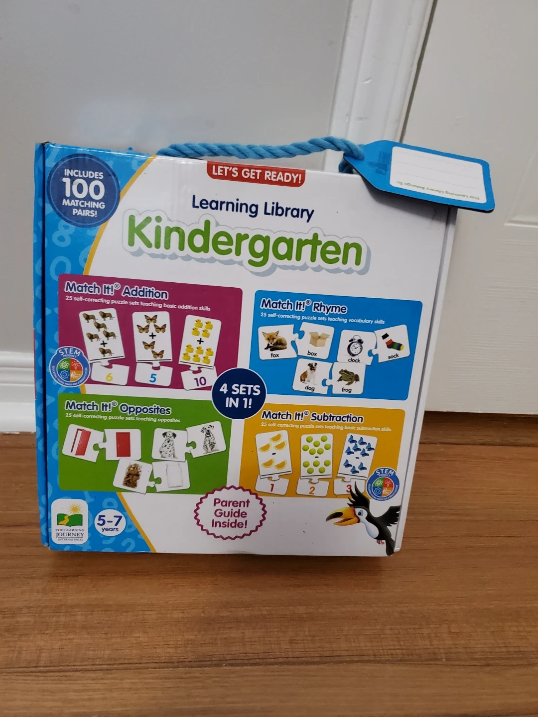 Get your little one ready for kindergarten with this learning library! It includes 100 matching pairs and features 4 sets in 1: Addition, Rhyme, Opposites, and Subtraction. It's designed for children aged 5-7 years and includes a parent guide inside