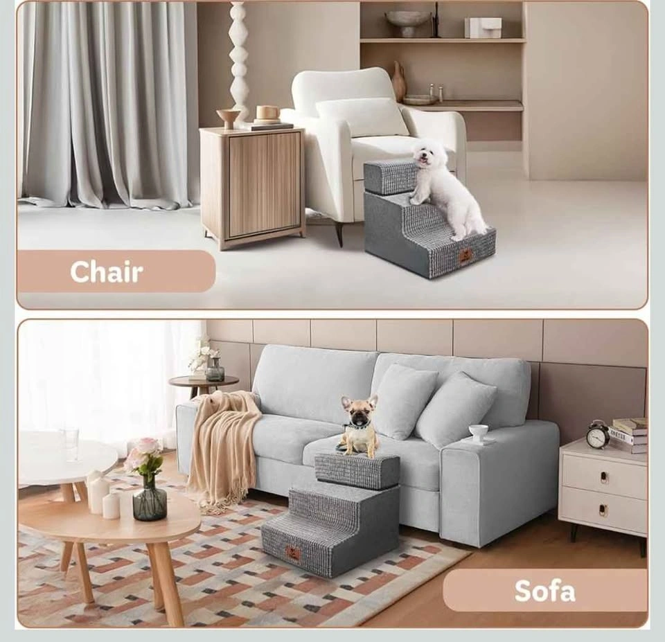 Brand New Pet Stairs Ramp for High Beds and Couch for Dogs to Get on Bed - 3 Steps Foldable Stairs for Small Dogs and Old Cats - Foam&Non-Slip&Washable by Sytopia, Grey, 3/4/5 Steps