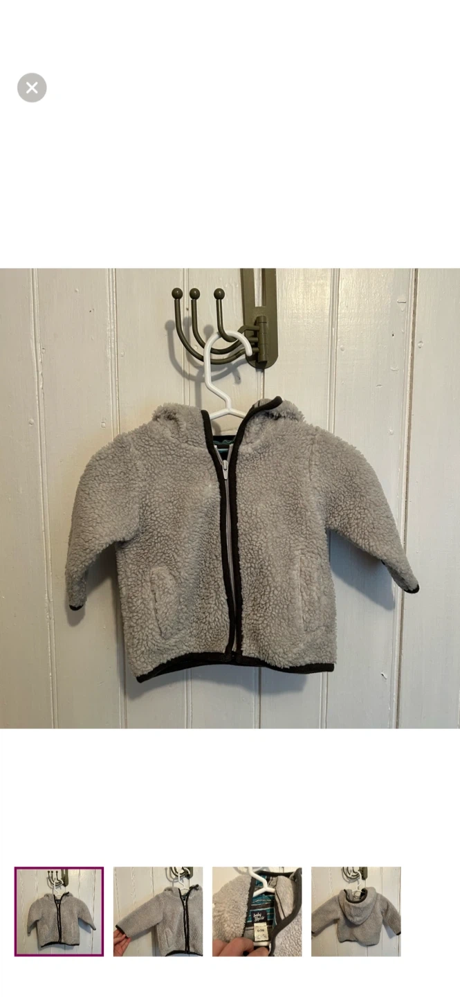 Oshkosh brand. Zip up hooded Sherpa sweater. Grey in colour with grey & blue striped inner lining. Size 0/3m. Brand new condition