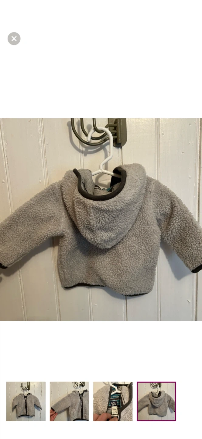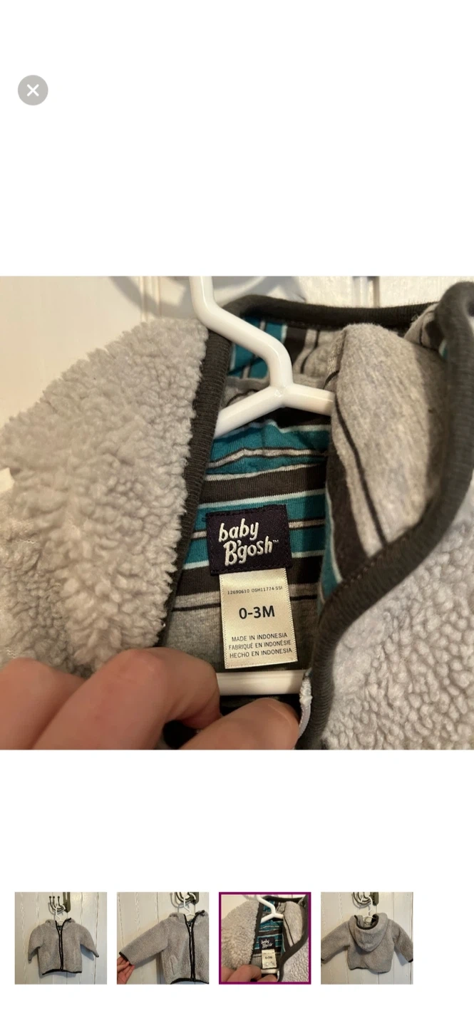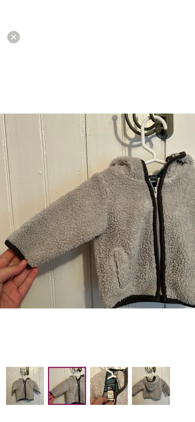 Oshkosh brand. Zip up hooded Sherpa sweater. Grey in colour with grey & blue striped inner lining. Size 0/3m. Brand new condition