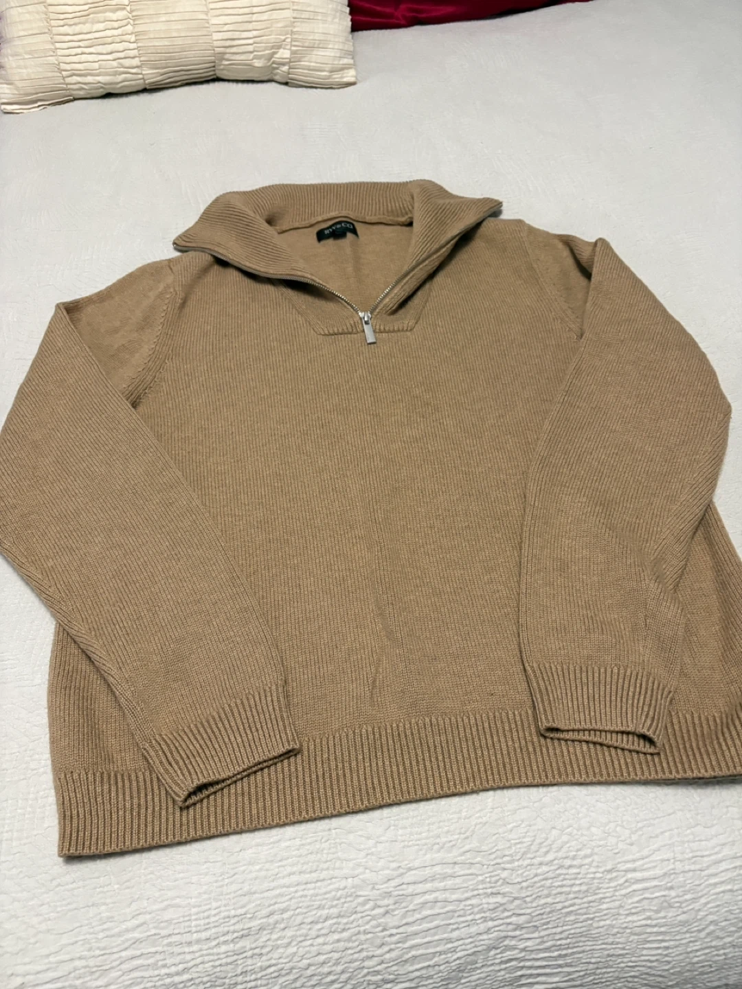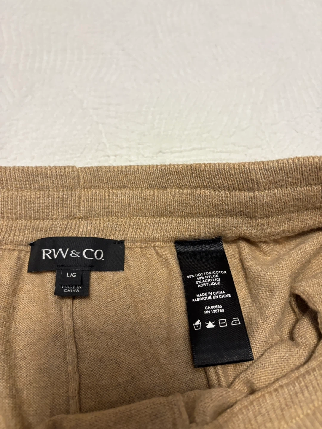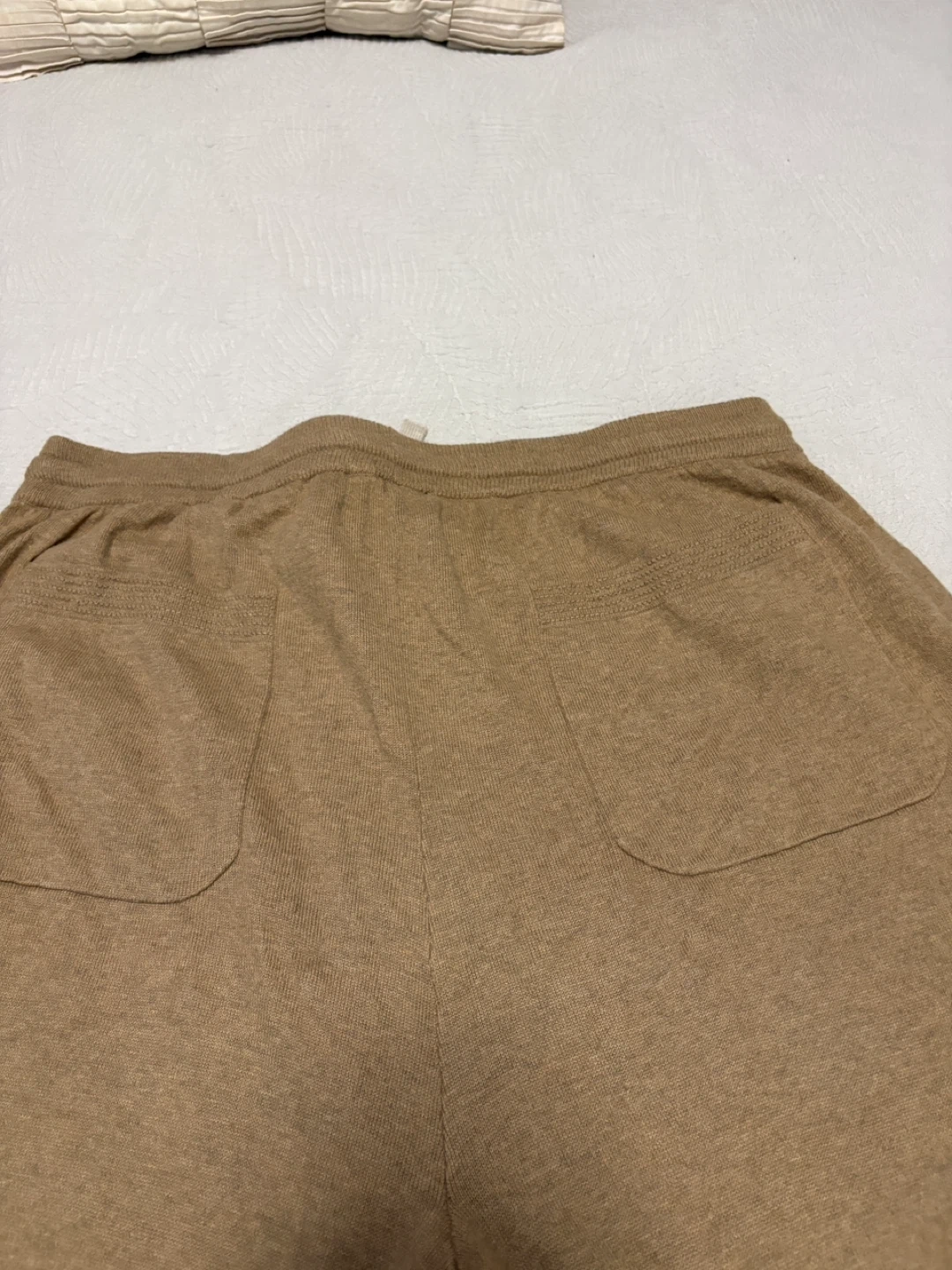 The sweater is size M/M and the pants are size L/G. The set is a lovely neutral colour and made of 55% cotton and 45% acrylic.