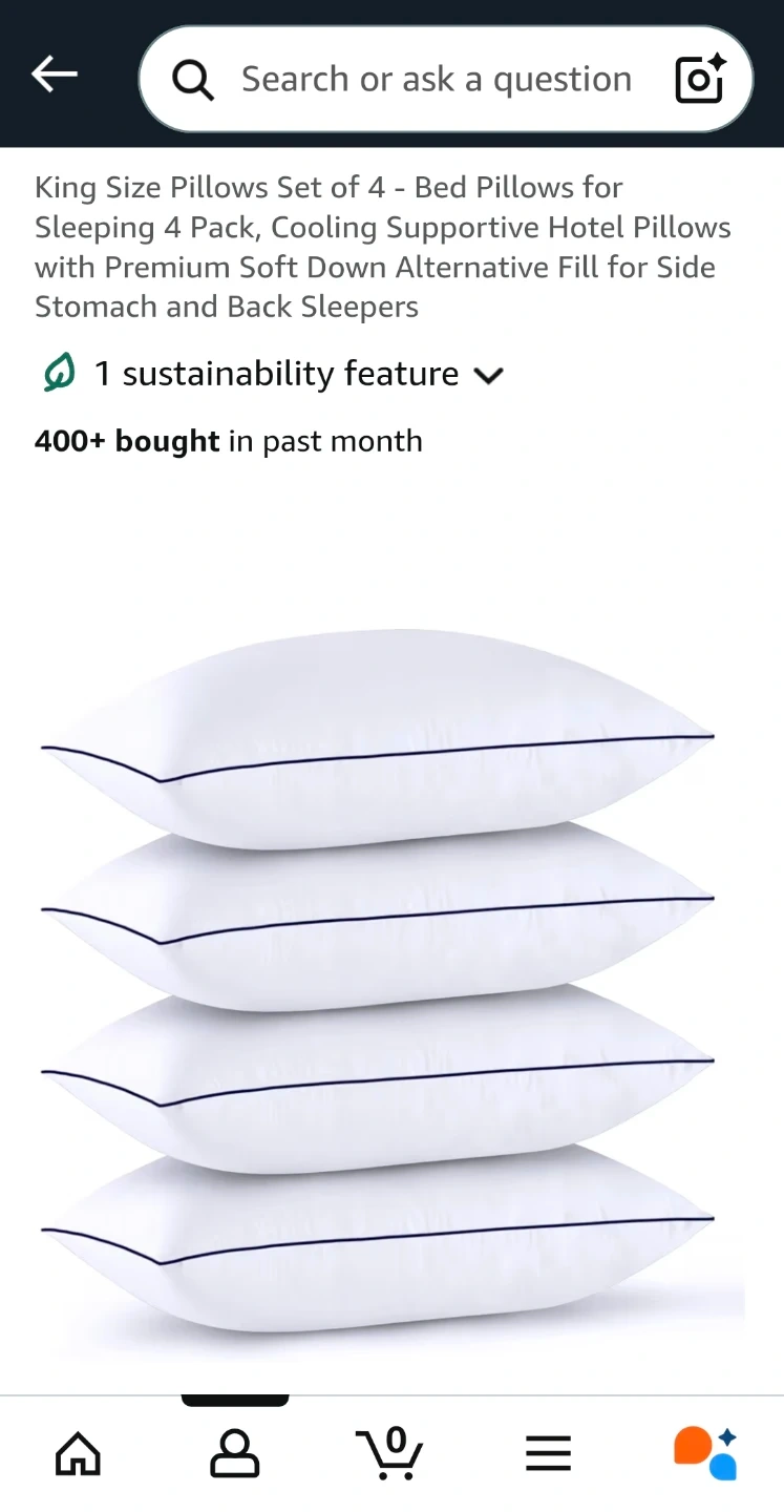 4 King sized pillows, a Christmas gift- washed but too fluffy for us. ๐