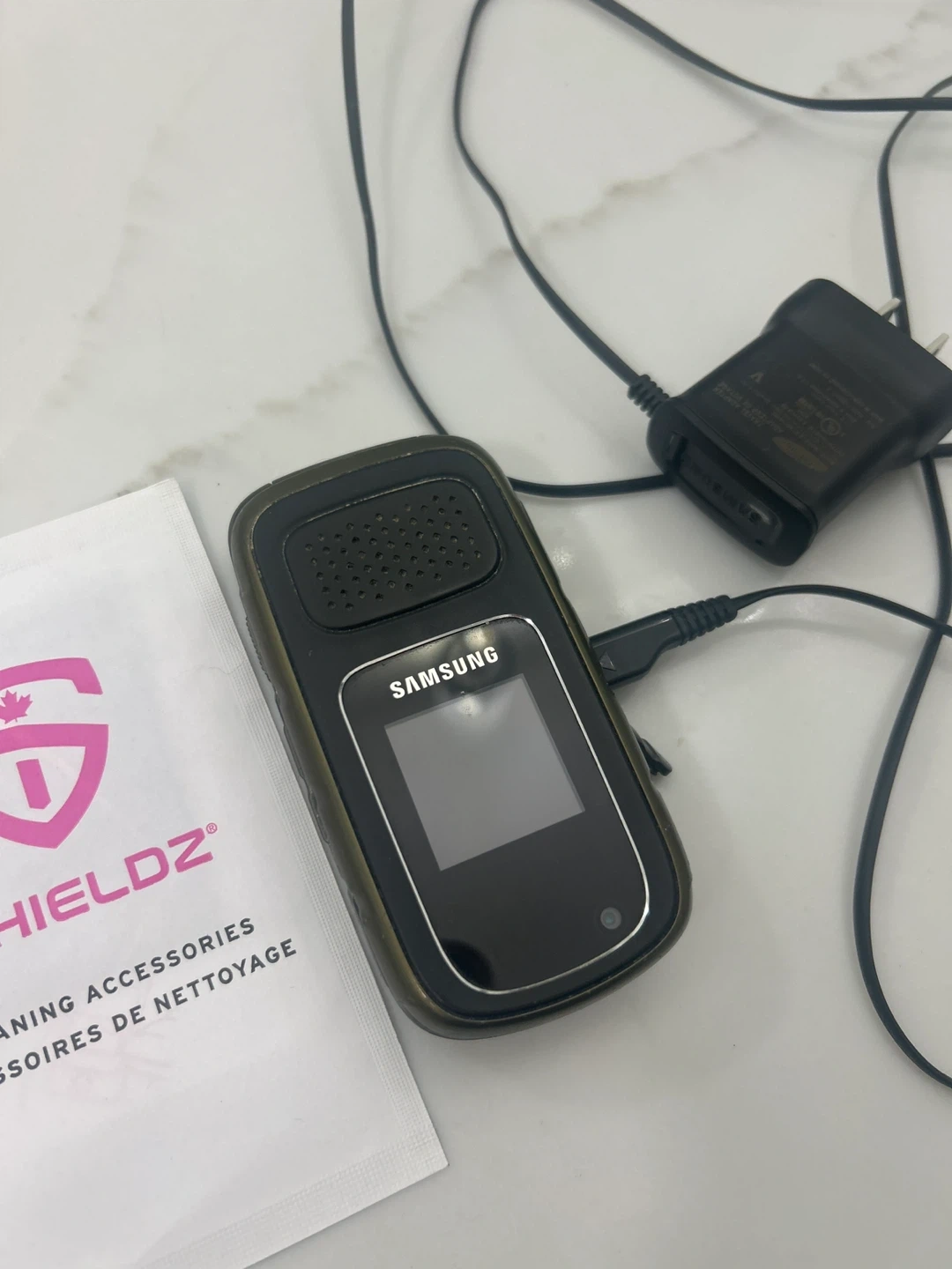 Selling a Samsung Rugby 2 A847, an unlocked GSM rugged flip phone. It's a durable and reliable phone, perfect if you need something tough! The phone has a classic flip design with physical buttons. Comes with charger in perfect working condition