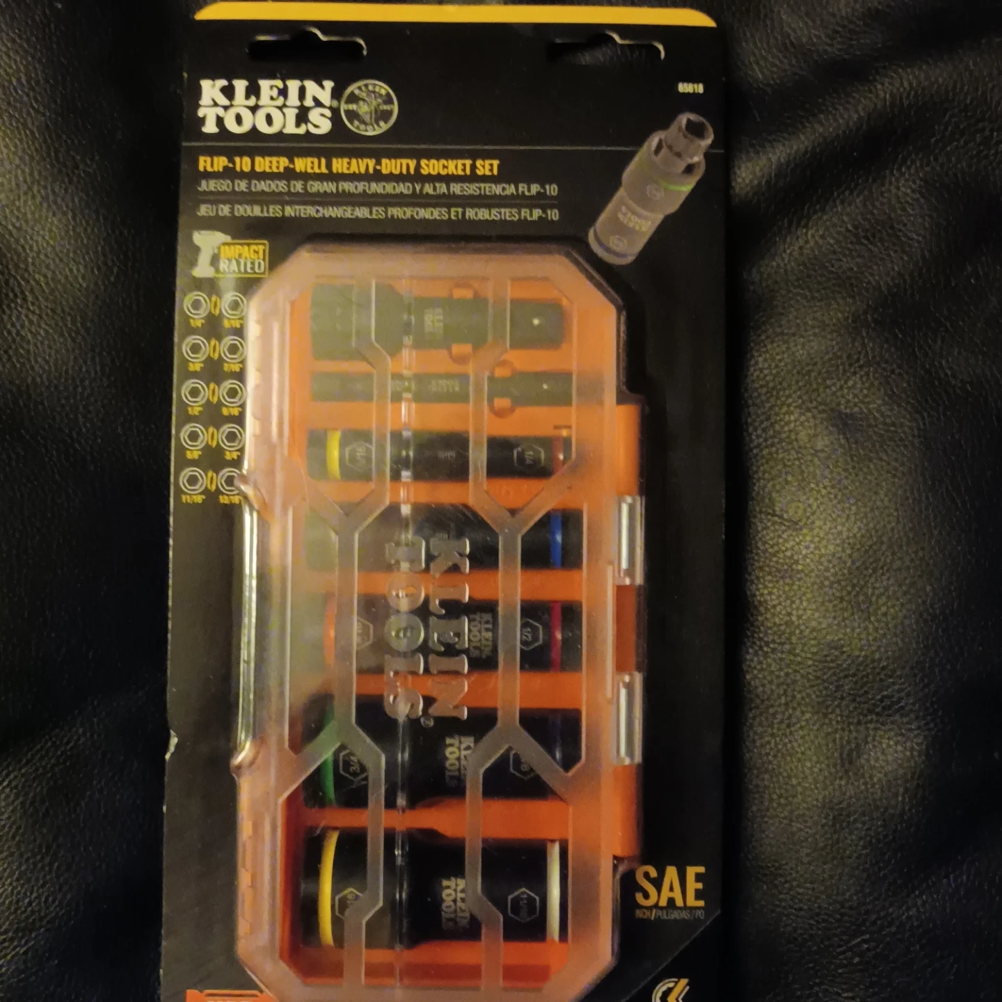 Selling a Klein Tools Flip-10 Deep-Well Heavy-Duty Socket Set. This set is impact rated and includes SAE measurements. It's a great addition to any toolbox!