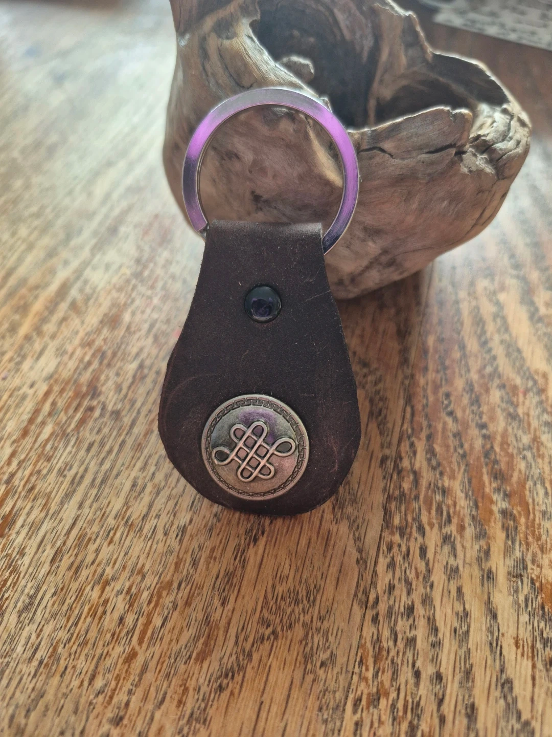 Handmade Leather Keychain with metal Celtic knot chonco