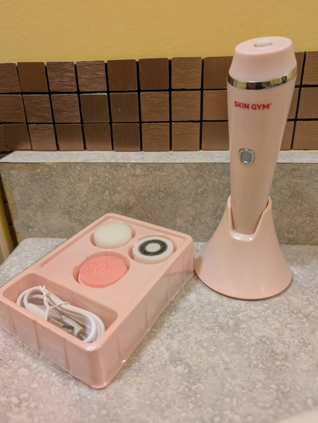 Selling a Skin Gym Cleania 3-in-1 Cleansing Brush Set! This set includes the brush and three different brush heads for a complete cleansing experience. It also comes with its charging cable. Perfect for keeping your skin clean and refreshed!