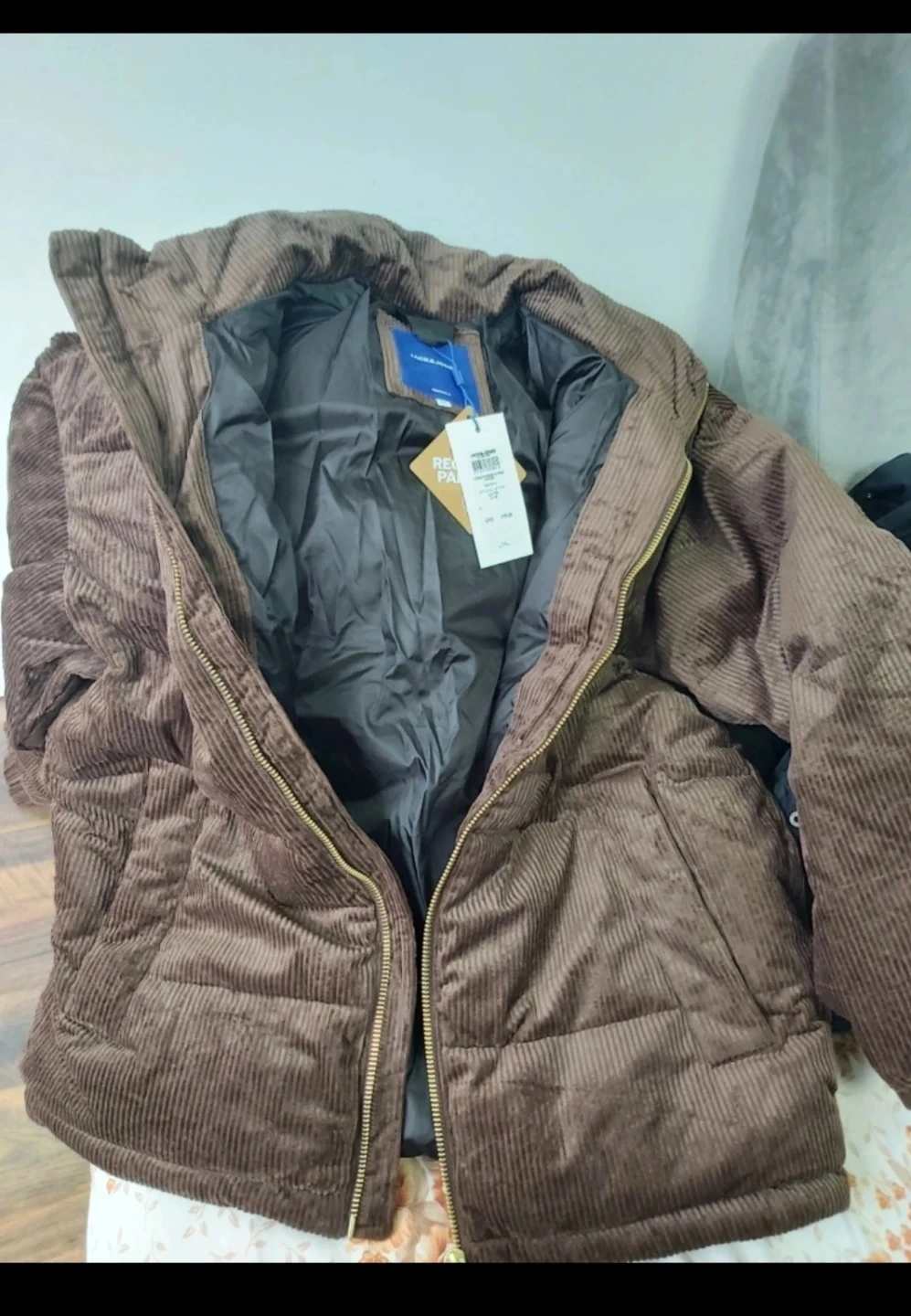 Brand new Jack and Jones Brown corduroy puffer jacket with gold zipper.