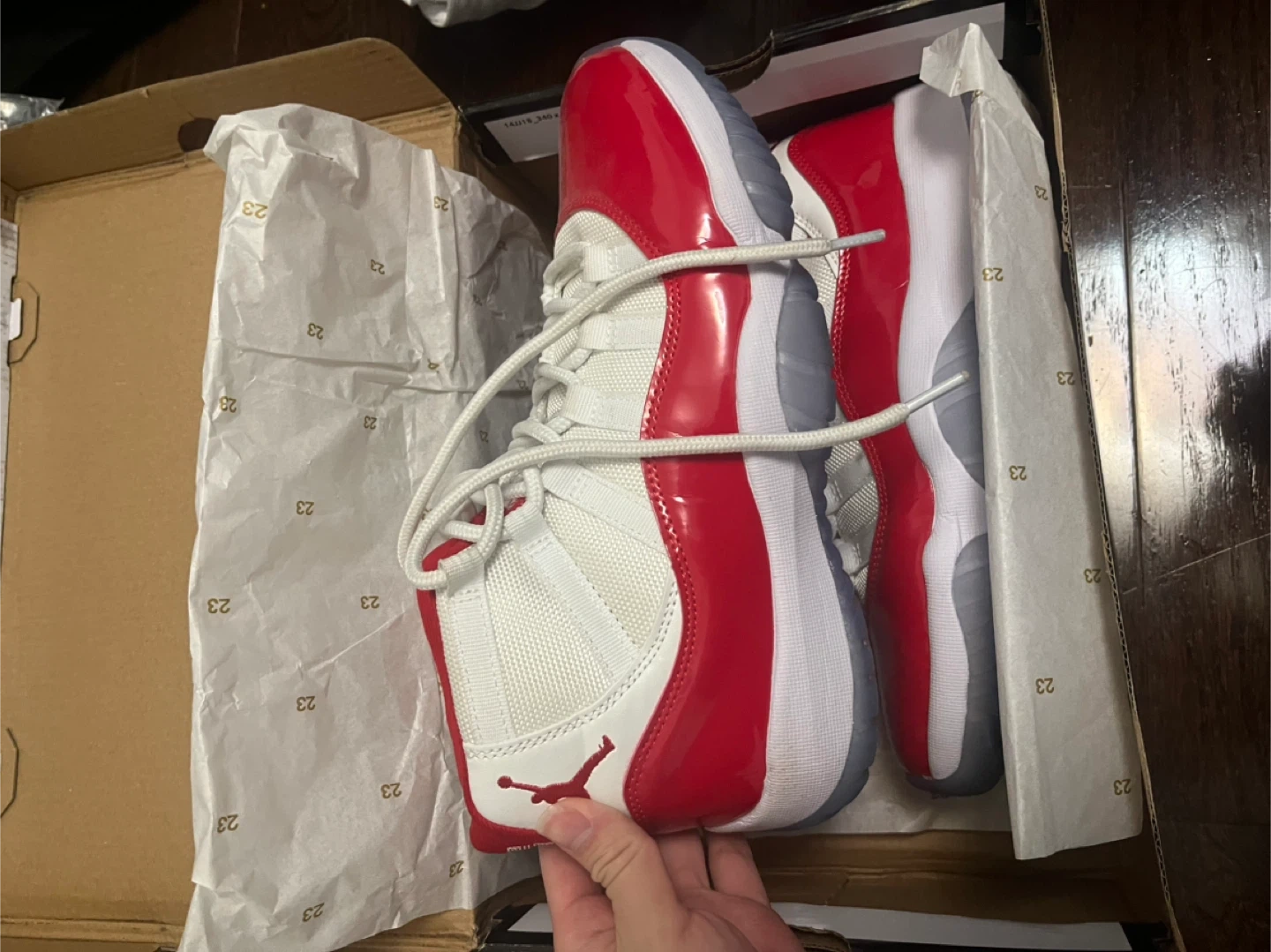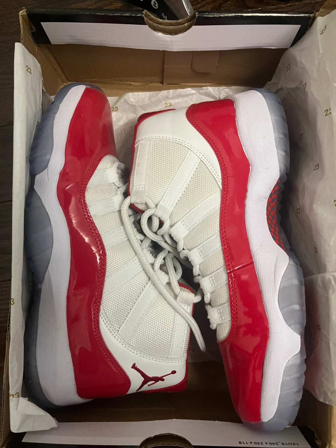 Selling a pair of Jordan 11 Retro Cherry sneakers. They come with the original box. The shoes are in great condition and ready for a new owner!