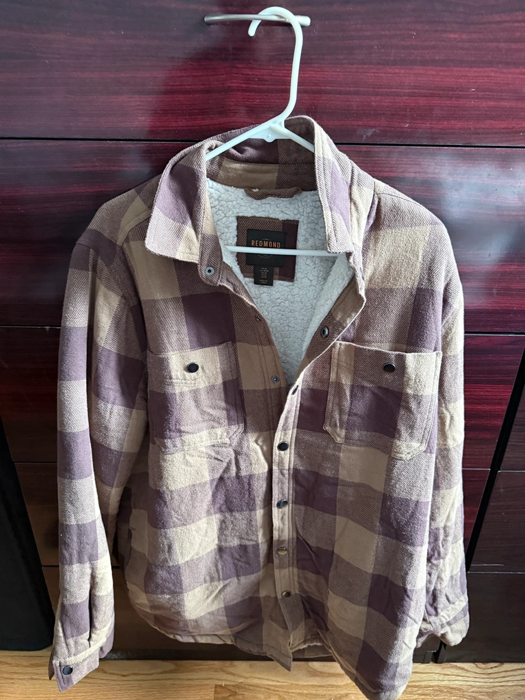 Selling a Redmond flannel shirt jacket with a cozy sherpa lining. It's a stylish and warm piece, perfect for layering during colder weather! The plaid pattern adds a classic touch. Feel free to ask any questions!
