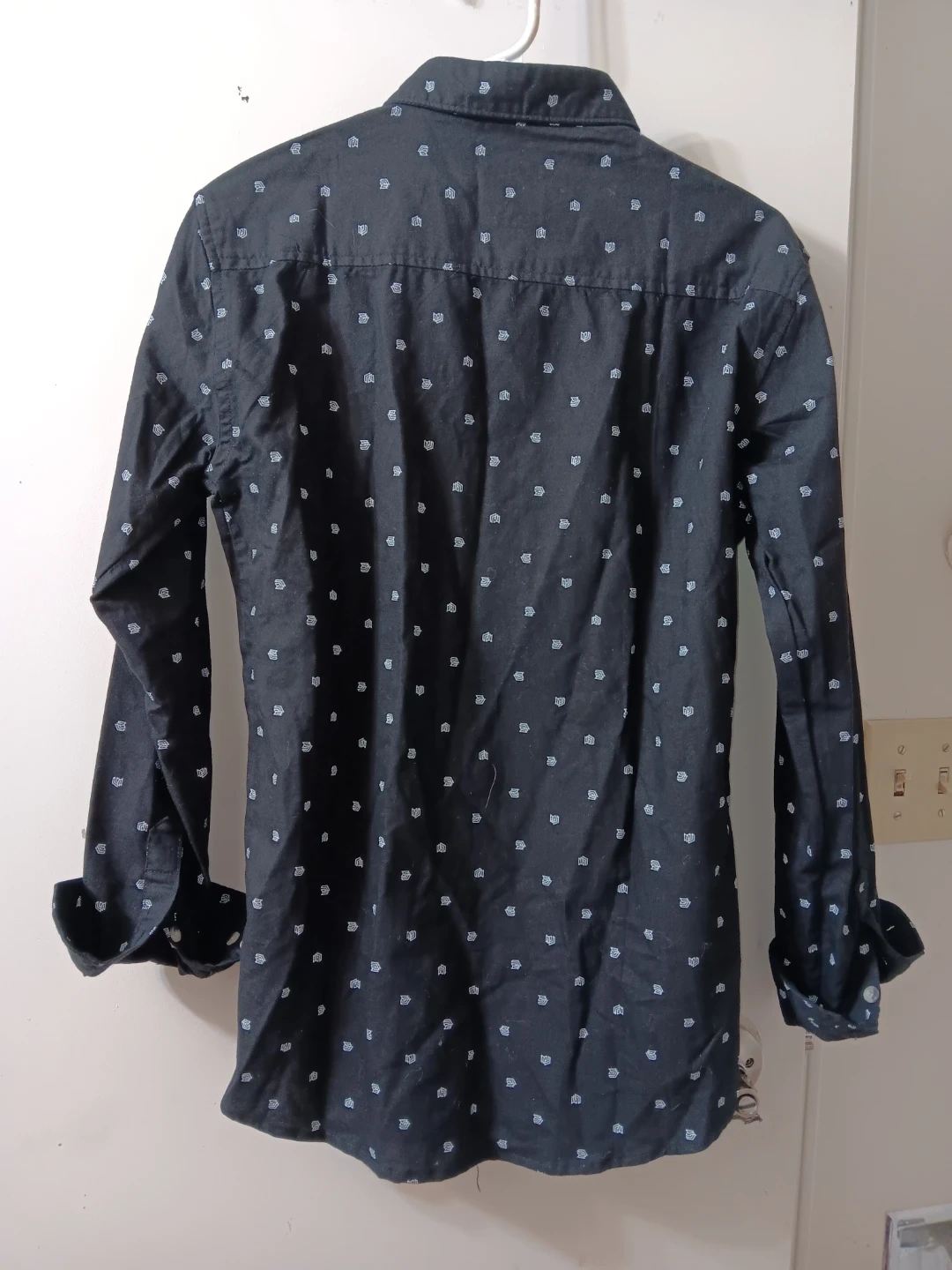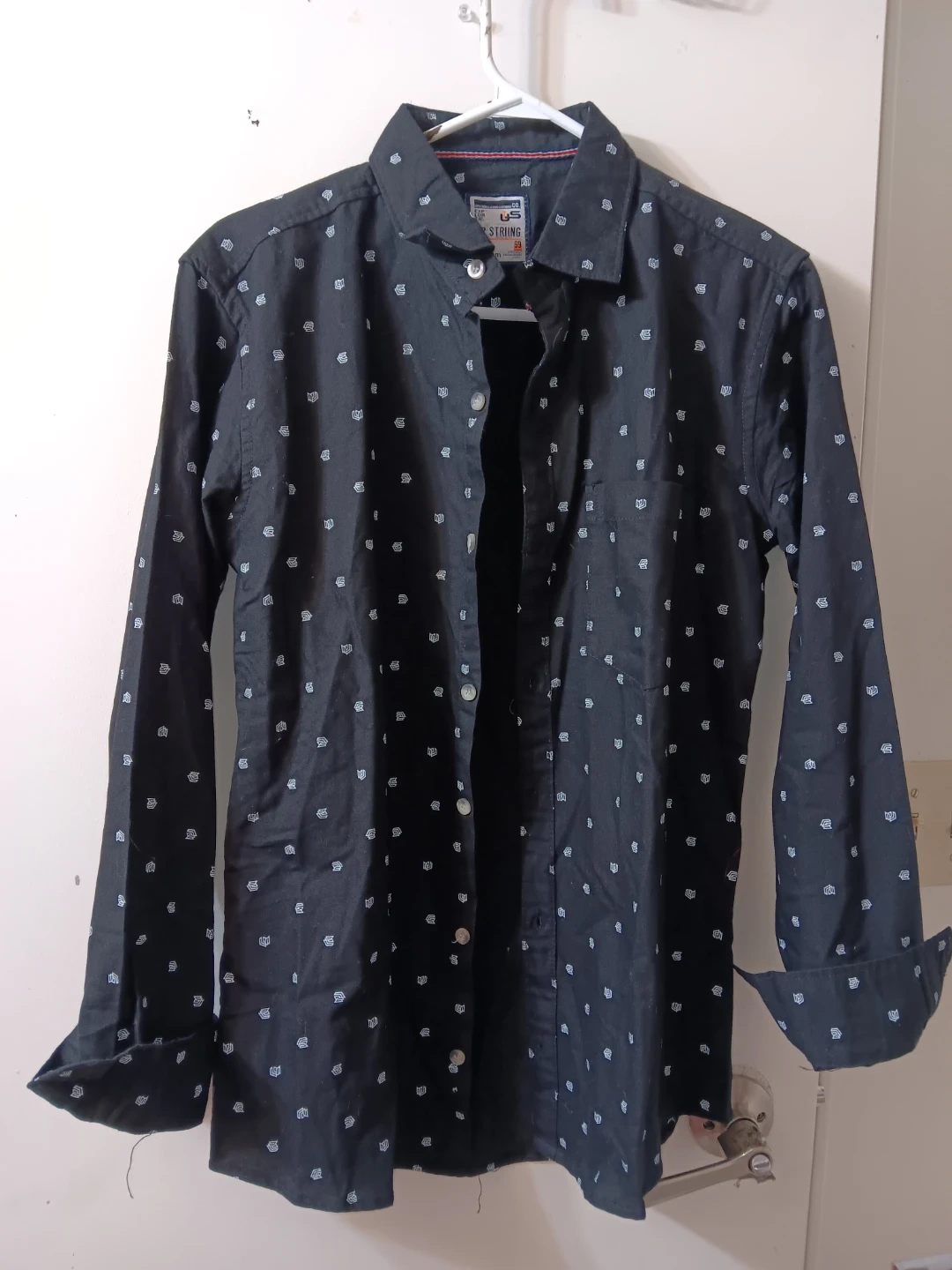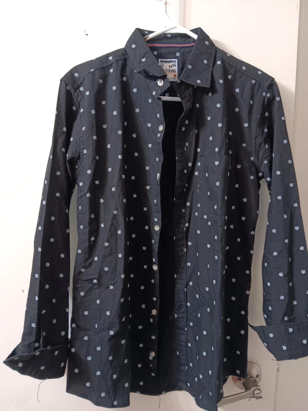 Here's a like-new, long-sleeved shirt from Up Striing! It's a size M/39cm and features a subtle pattern on a Navy blue background. Perfect for adding a bit of style to your wardrobe!