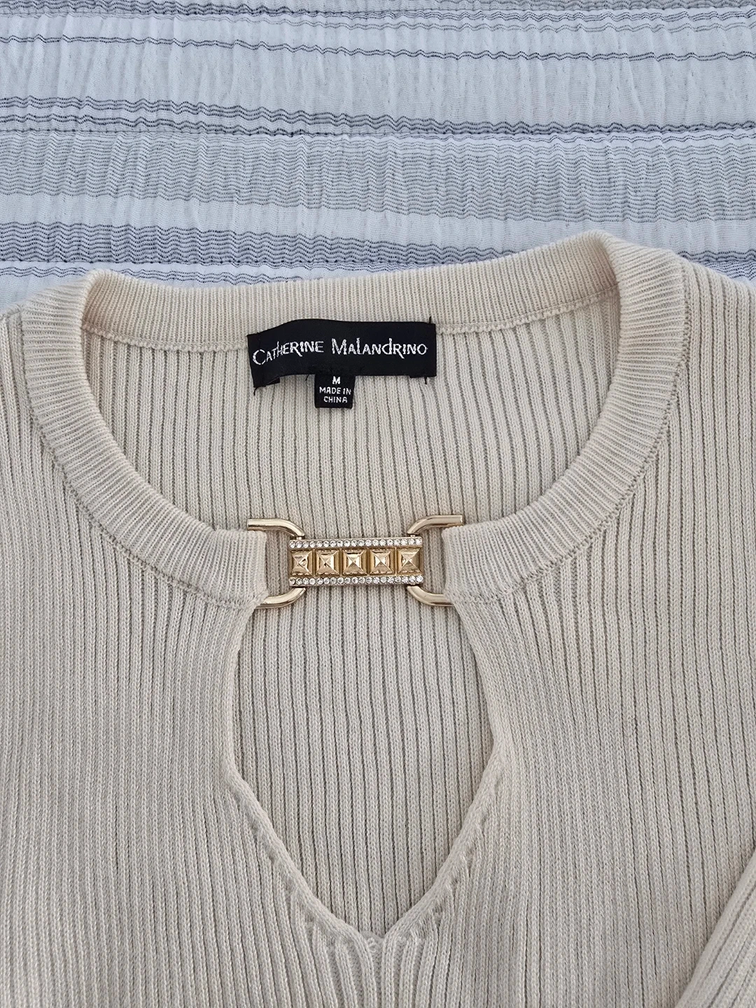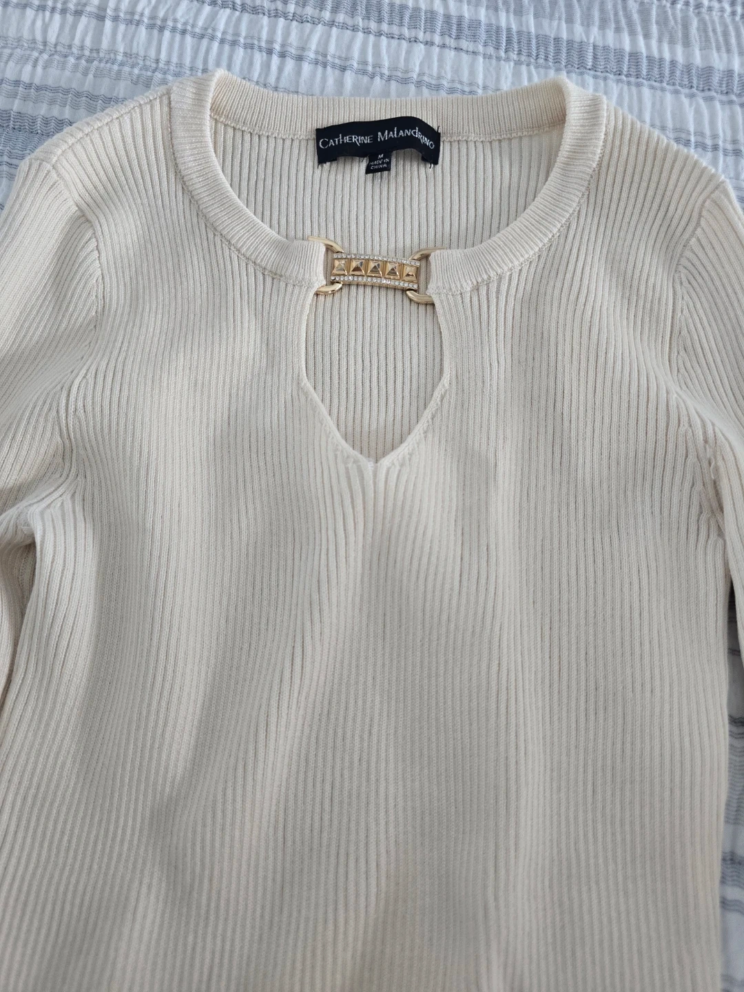 Catherine Malandrino Cream Ribbed Top - Size M