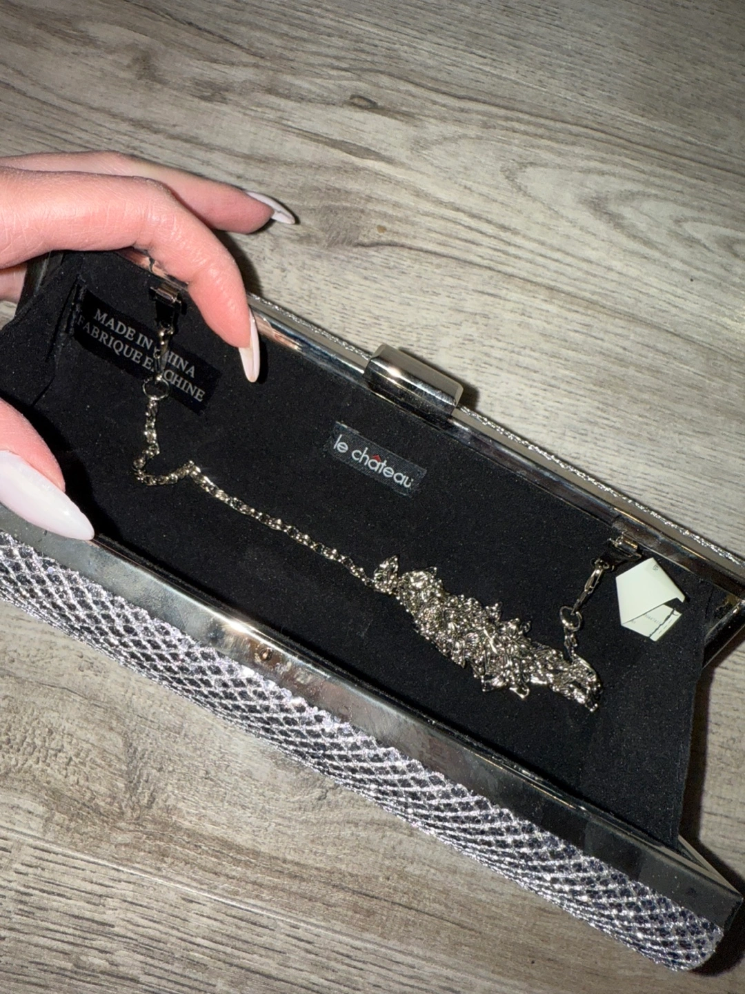 Le Chateau Silver Glitter Clutch