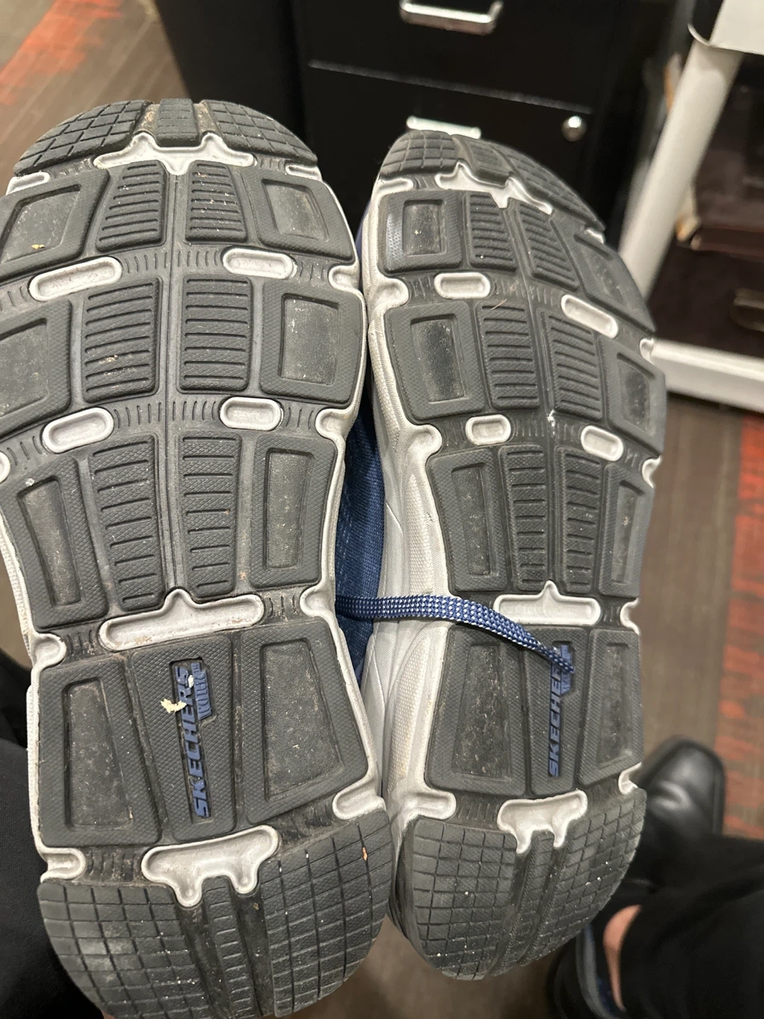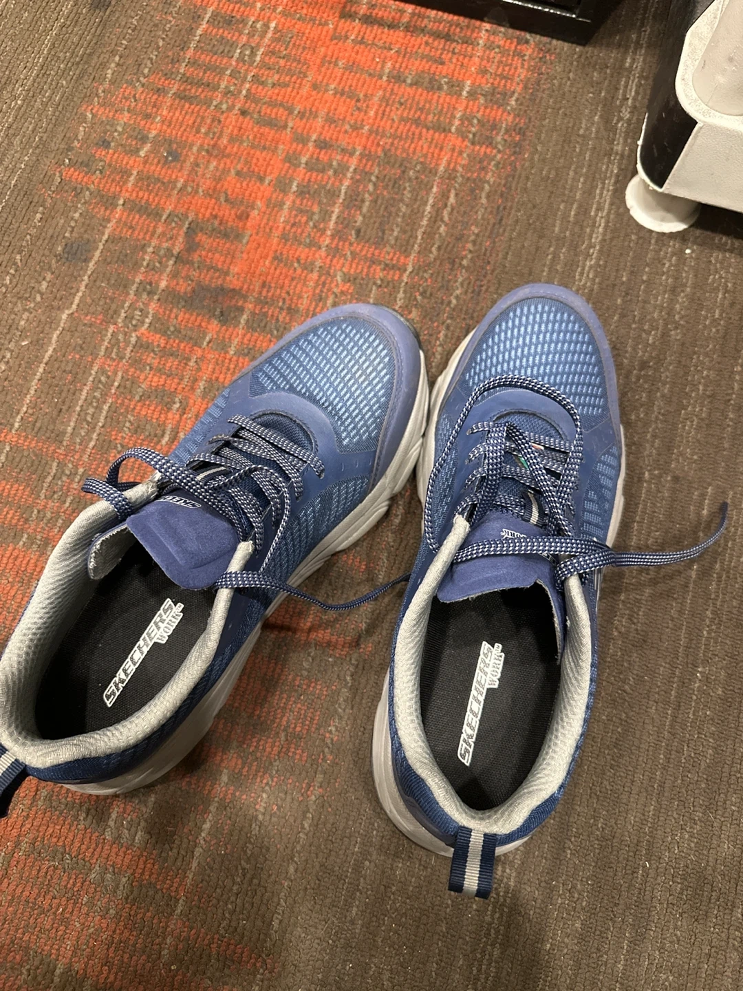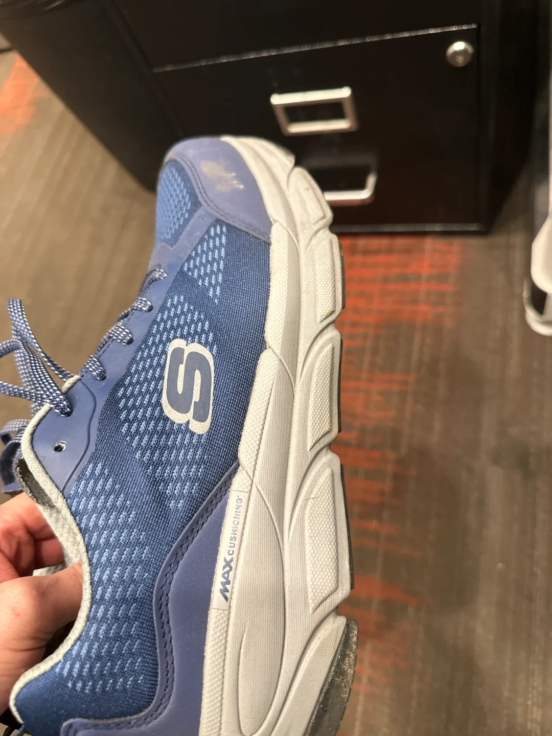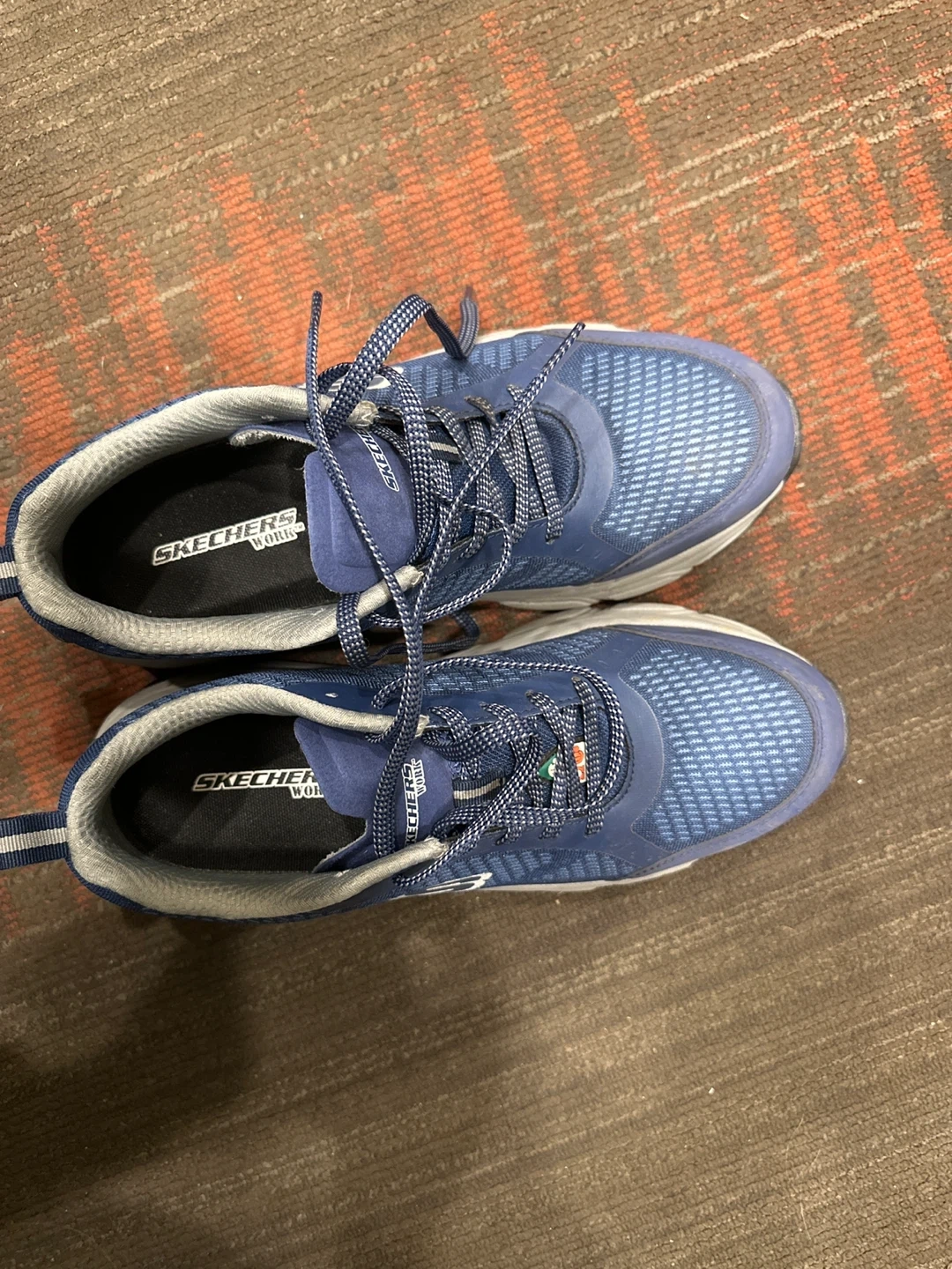 Selling a pair of Skechers Work steel toe Relaxed Fit shoes in blue! They have a MAX CUSHIONING sole and are in new condition. Perfect for anyone needing comfortable work shoes.