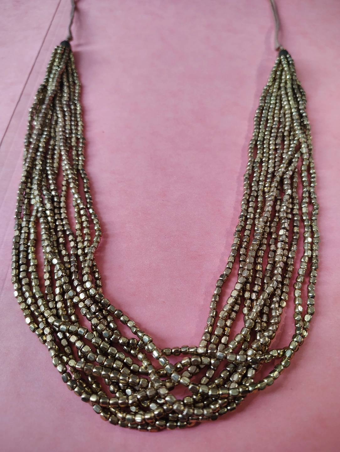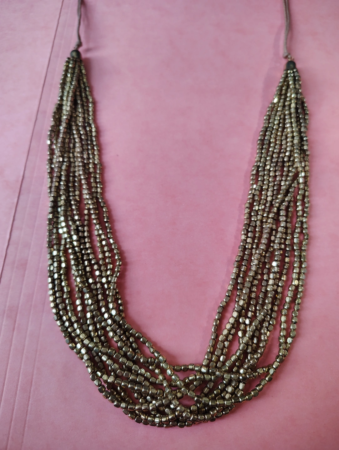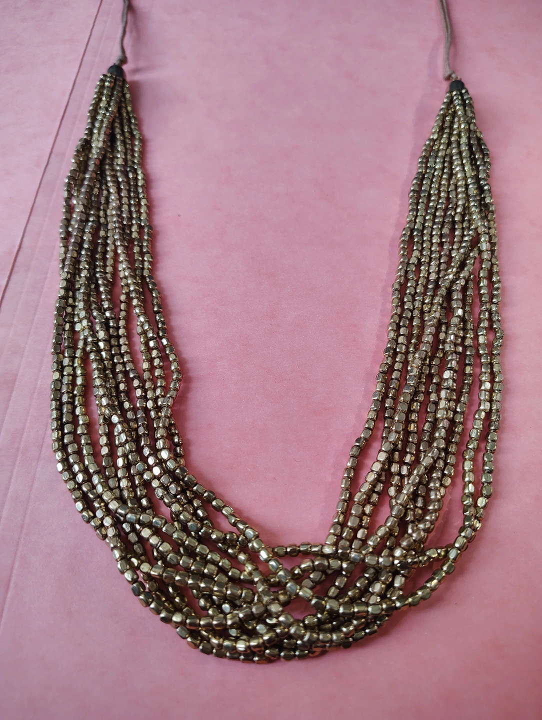 ✨Gold Tone Gold Bead & Tan Cord Necklace✨
