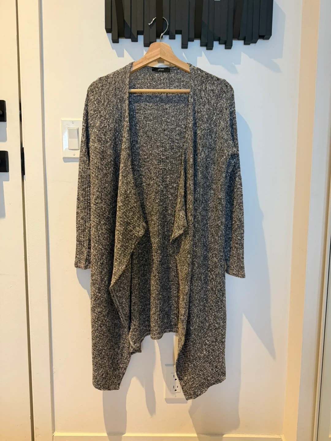 Light cardigan in a grey knit. It's super comfy and great for layering! Perfect for those chilly evenings or just lounging around the house