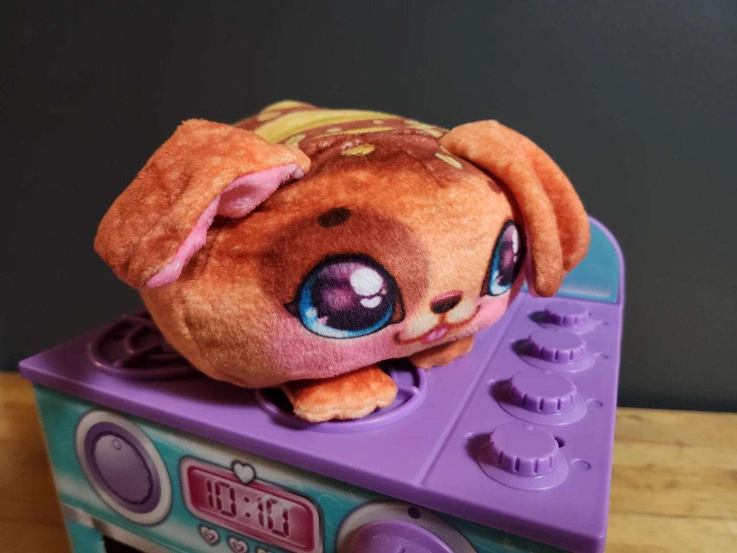 Have a little baker in your life? This Cookeez Makery oven is ready for a new home! It's in great shape and comes with an adorable plush toy that 'bakes' inside. Hours of fun and imaginative play await! Squeeze plush toy to activate cute barking sounds! Batteries included.