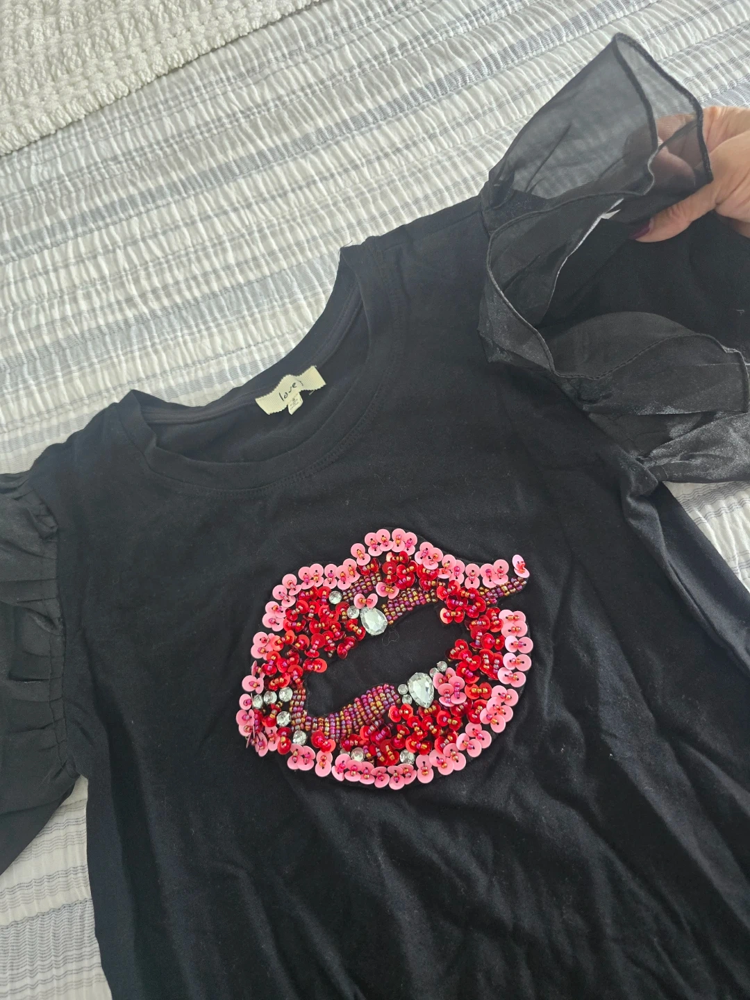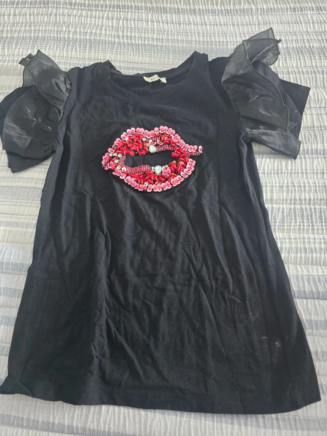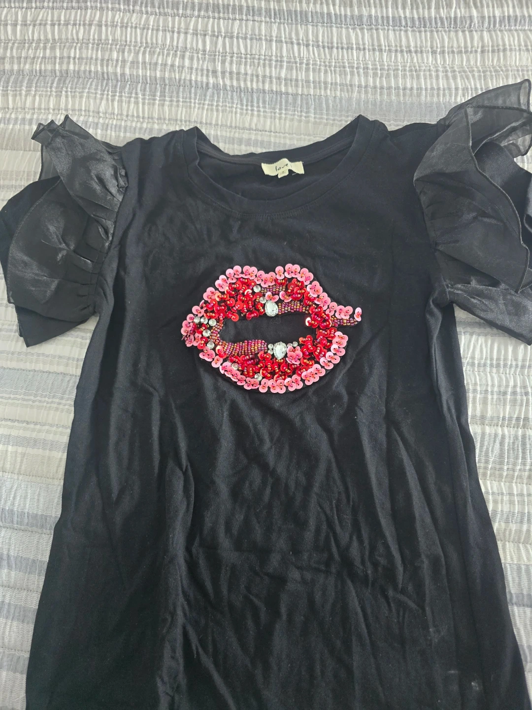 Buy & SellWomen's T -Shirt with a lip print.Women's T -Shirt with a lip print.$7Cute black t-shirt with lips design. The sleeves have a unique ruffled design. Size smallConditionOkayWHERE TO MEET3279 Third Ave. McDonaldView MapSELLER782032Woodstock100 reviews0 chats·0 favorites·5 viewsSEND CHAT TO SELLERHi 782032! I’m interested in your listing.Hi 782032! I’m interested in your listing.Get the Karrot app to chatSign In to chat