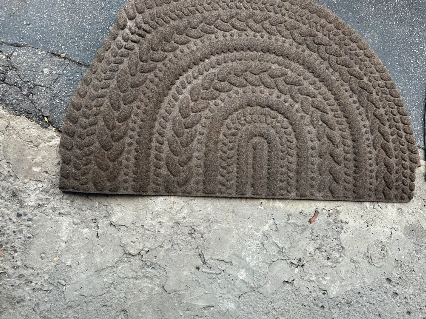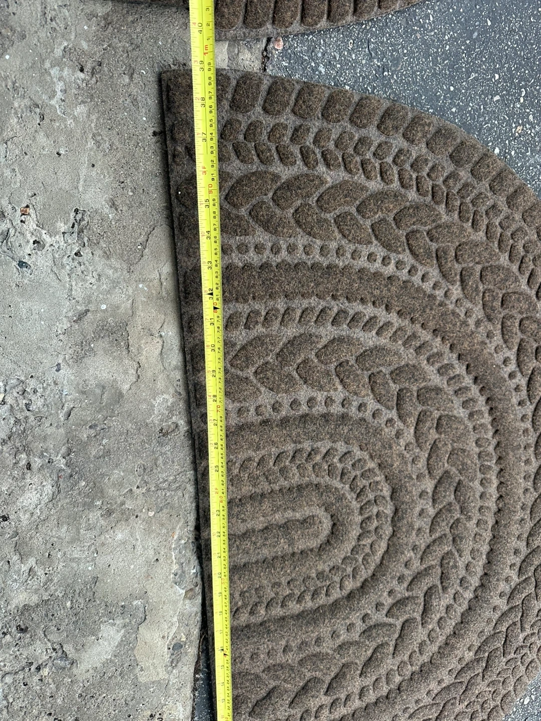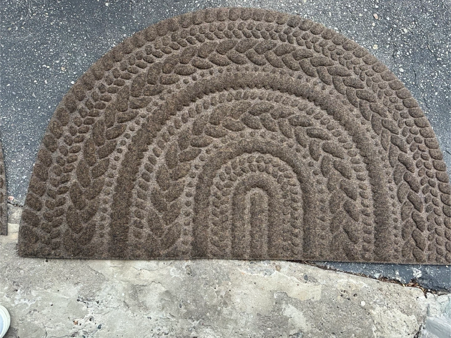 Selling a set of braided half-round doormats. The larger mat measures approximately 39 inches at its widest point, and the smaller one is about 24 inches. They're in great shape and ready to add a cozy touch to your entryway!