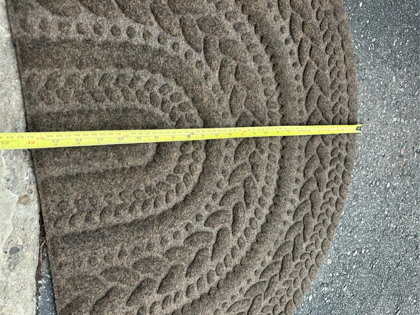 Selling a set of braided half-round doormats. The larger mat measures approximately 39 inches at its widest point, and the smaller one is about 24 inches. They're in great shape and ready to add a cozy touch to your entryway!