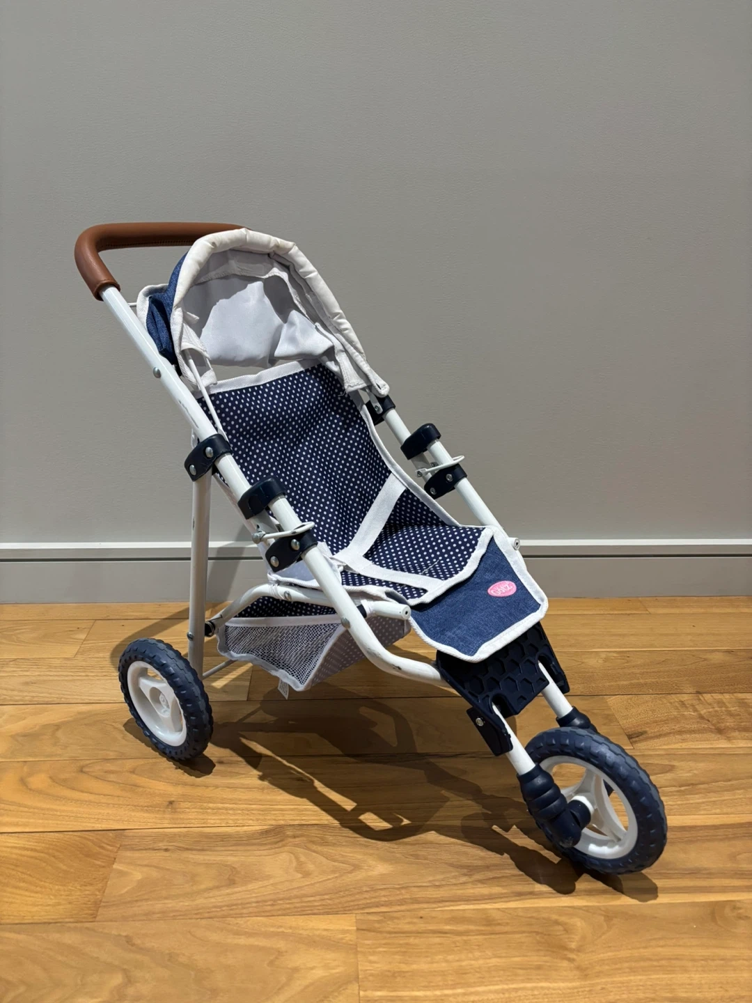 Götz Doll Stroller – Blue Polka Dot & Denim Design