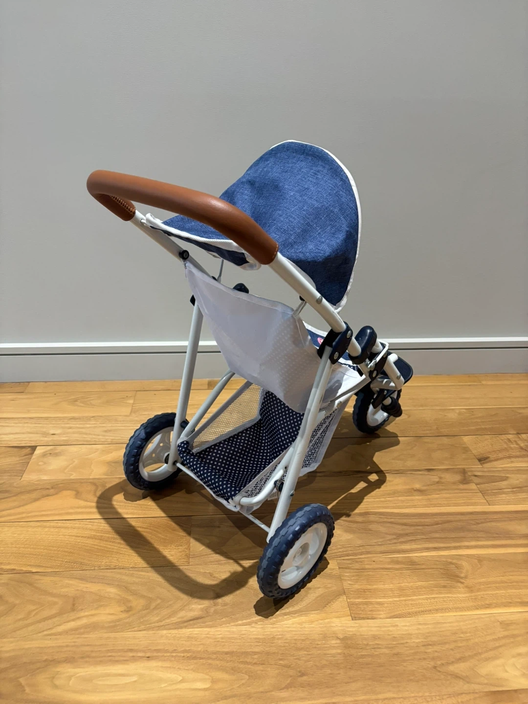 Götz Doll Stroller – Blue Polka Dot & Denim Design