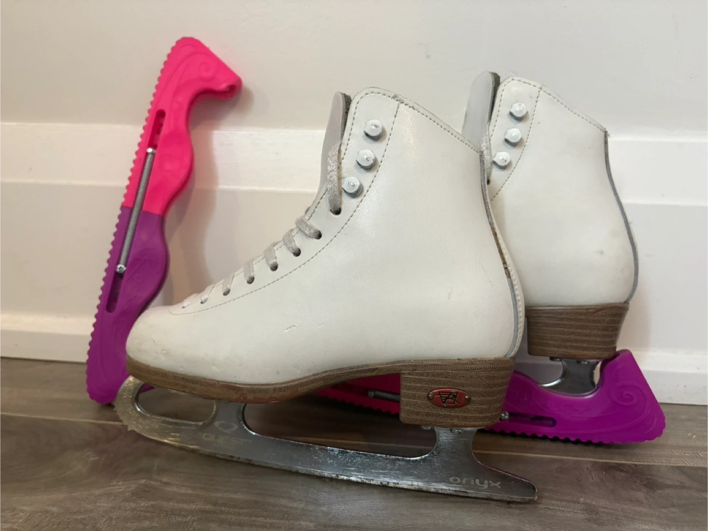 Skates have been used a couple of times but are in excellent condition. The white ones include the blade protectors and size 1 and the pink ones are size 12J. Pickup near Young and Shepherd. They are $20 each or 30 for both.