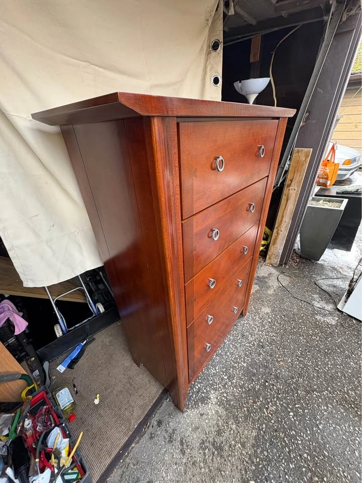 Beautiful MCM-style solid wood 5-drawer dresser.