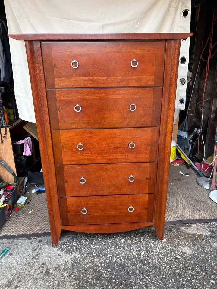 Beautiful MCM-style solid wood 5-drawer dresser.