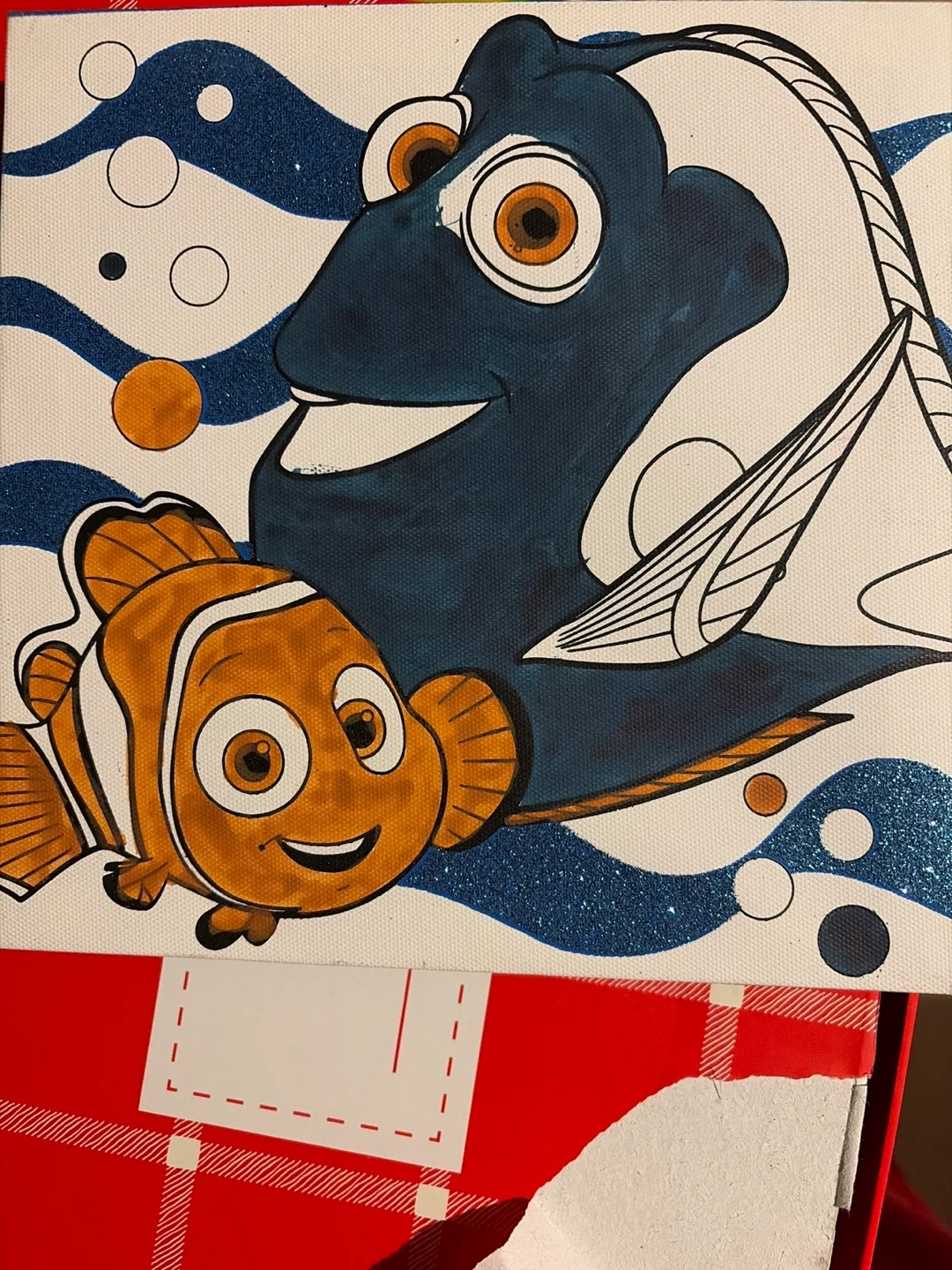 Here's a cute Disney/Pixar canvas art piece featuring Nemo and Dory! It's perfect for a kid's room or any fan of Finding Nemo
