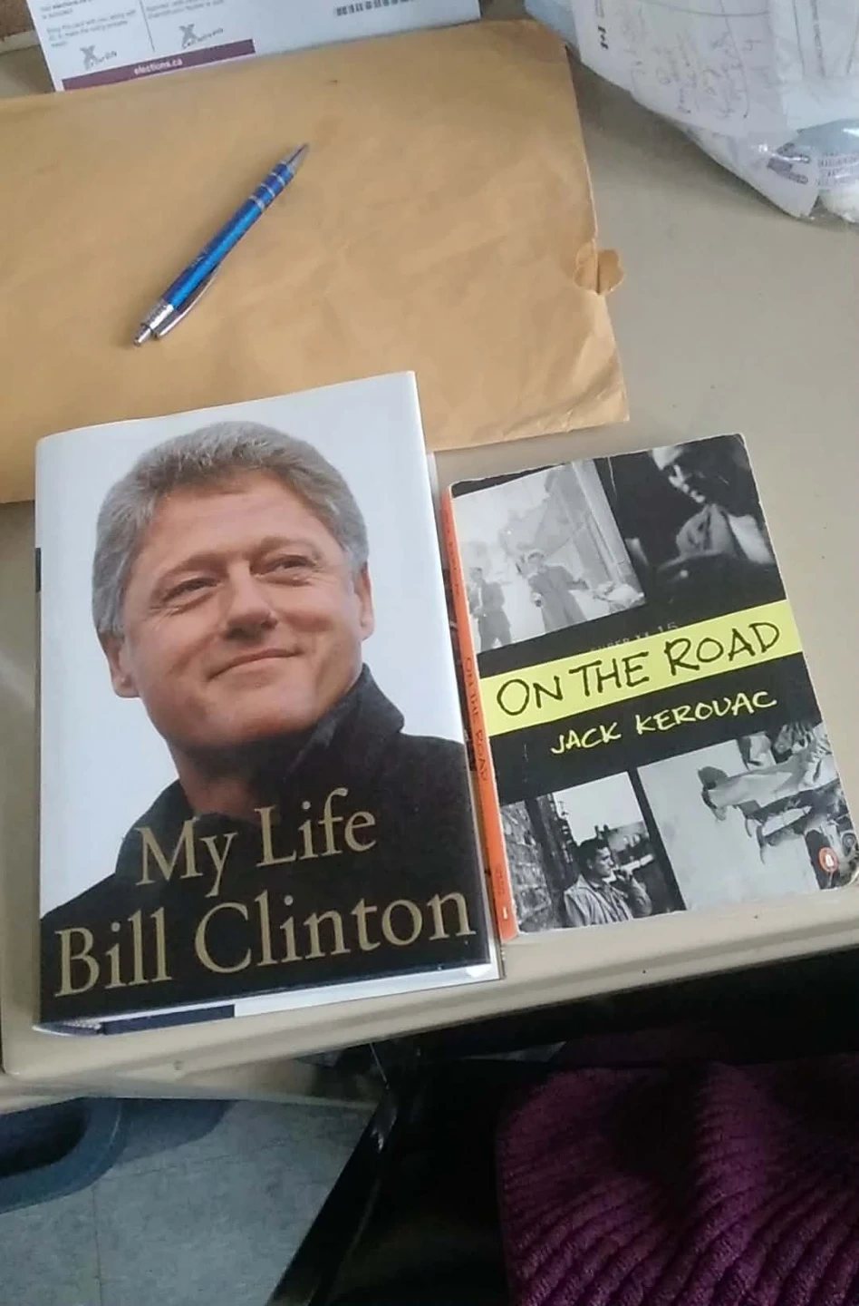 My Life is an autobiography by Bill Clinton. This copy has been signed by the author. The novel "On the Road" by Jack Kerouac is also included.