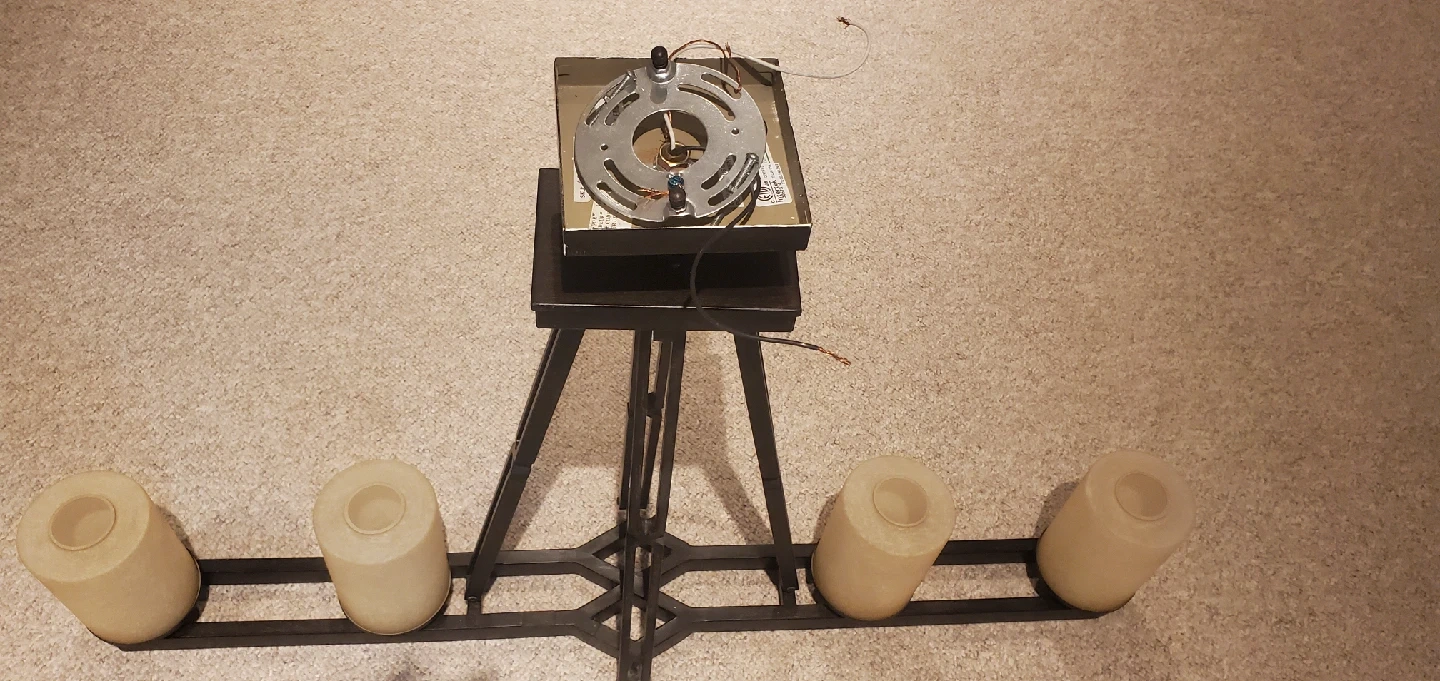 Selling a chandelier with four lights. It is black in colour and has a unique design! Great for adding a touch of elegance to any room.