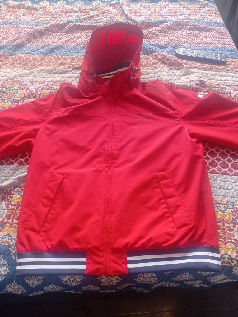 Cozy Tommy Hilfiger hooded jacket in a vibrant red colour! It's in great condition and ready for a new home. The jacket features a comfortable lining and a stylish design. Size L. No tags but it's practically new. I bought it around this time last year. Worn no more than 3 times before facing the fact that the arms are too short for me. It's just sitting in my closet...
