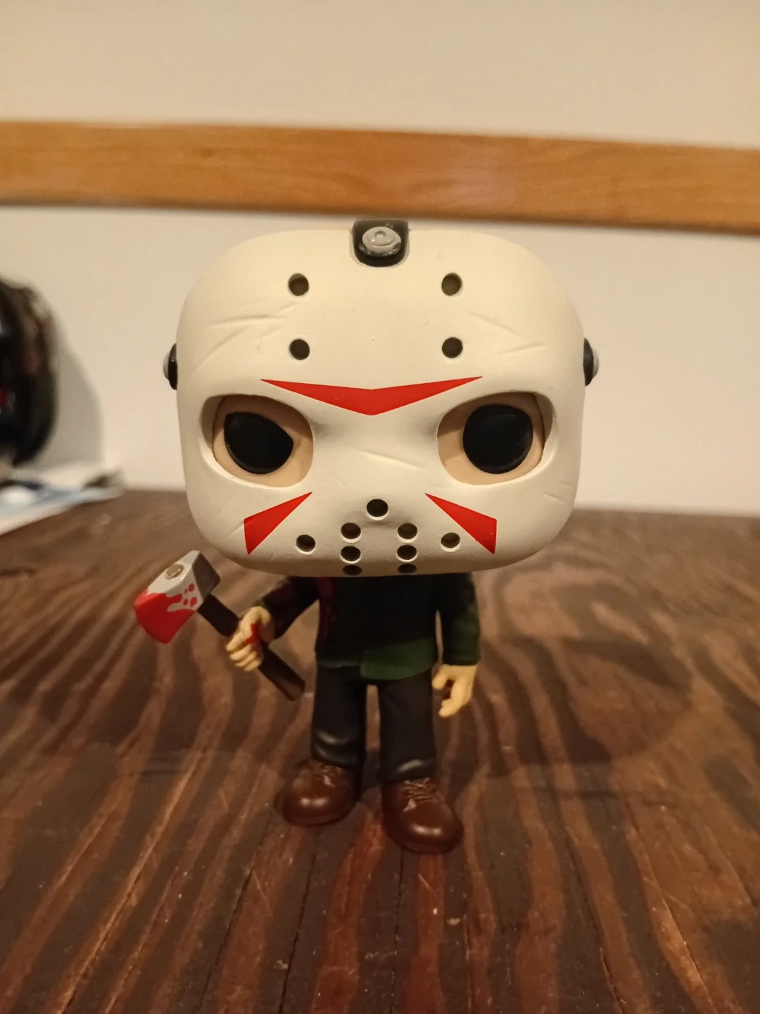 This is a Funko Pop! figure of Jason Voorhees from Friday the 13th. It depicts him with his iconic hockey mask and holding an axe. A must-have for horror fans!