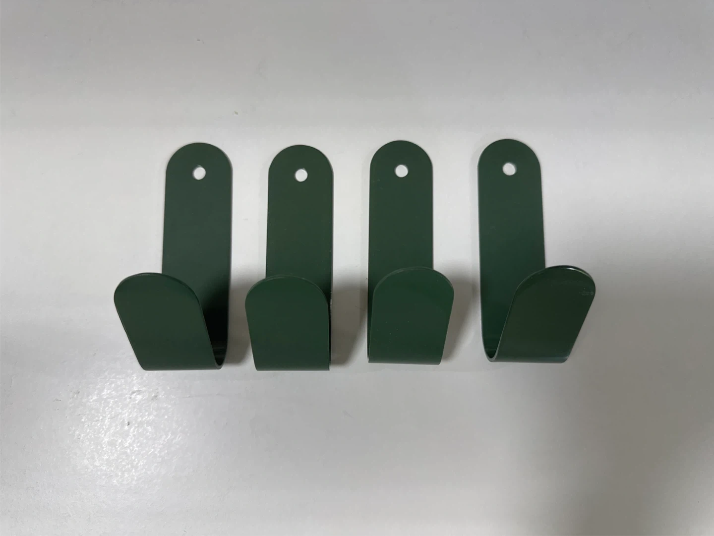 Selling a set of four sturdy metal wall hooks in a nice green colour. They're perfect for hanging coats, towels, or anything else you need to keep off the floor. They are in great condition and ready to use!