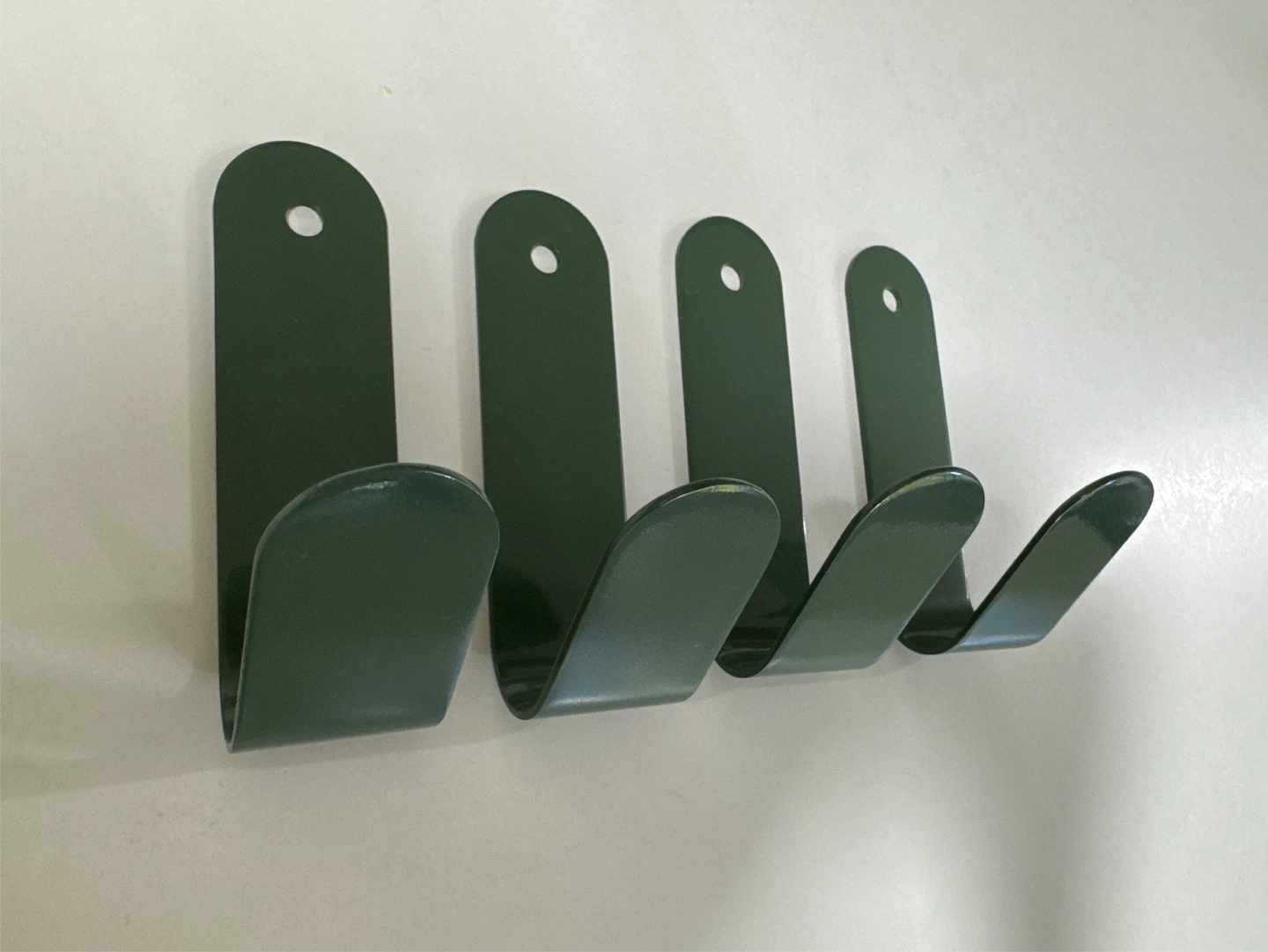 Selling a set of four sturdy metal wall hooks in a nice green colour. They're perfect for hanging coats, towels, or anything else you need to keep off the floor. They are in great condition and ready to use!