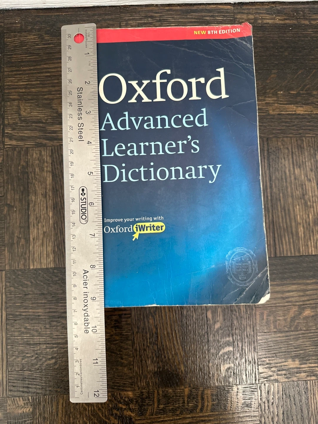 This is the New 8th Edition of the Oxford Advanced Learner's Dictionary. It's a comprehensive reference book for English language learners. Improve your writing with Oxford iWriter. Measures approximately 9 inches tall , 6 inches wide 2 inch thick.