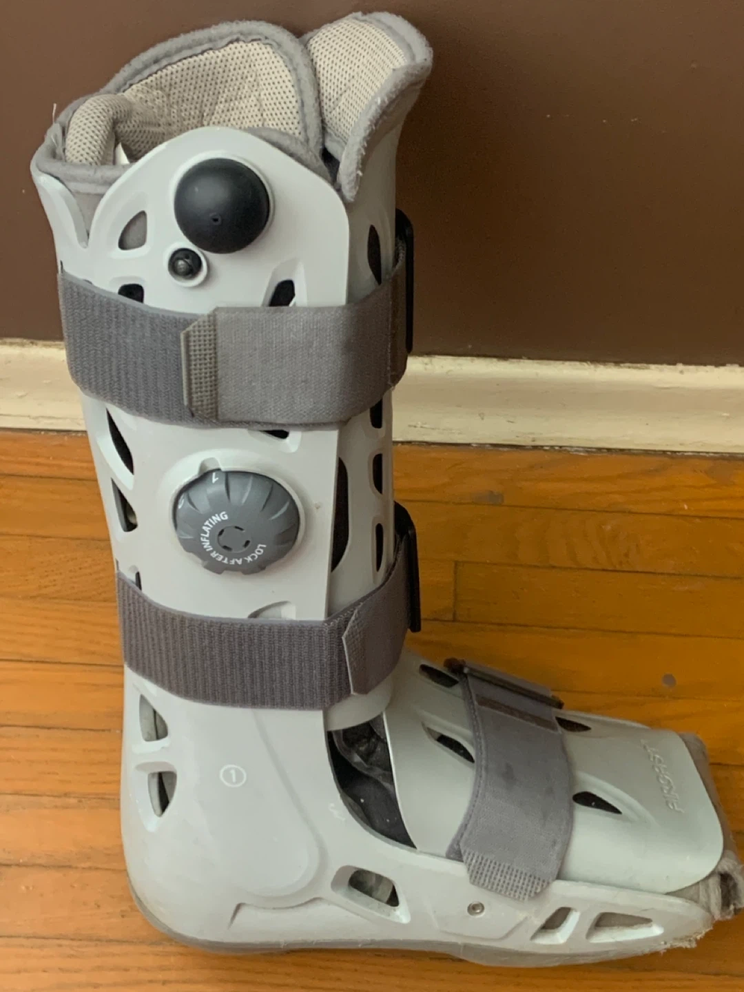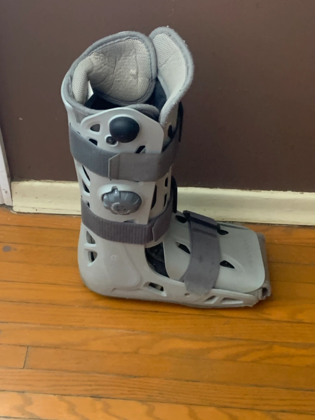 This is an Aircast walking boot for injury support. It features adjustable straps for a secure fit. This boot helps protect your lower leg and foot.