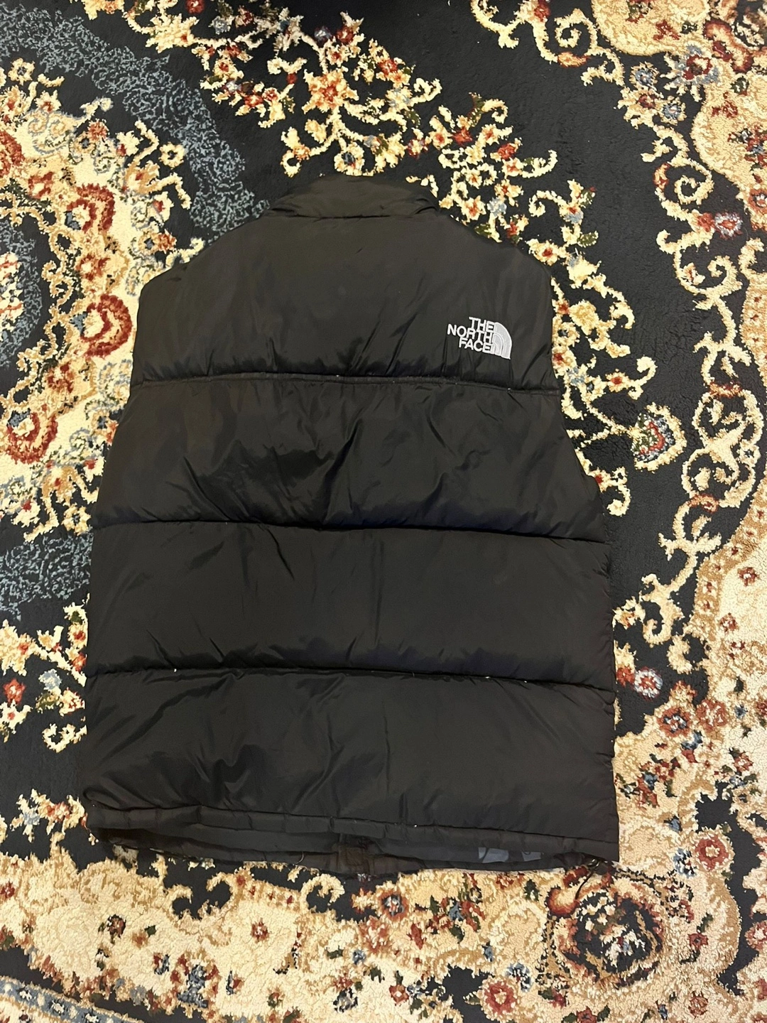Selling a black The North Face Nuptse puffer vest. It's in great condition and ready for a new home! This vest is perfect for layering and keeping warm during those cooler Canadian days. It features a full zip and the classic North Face logo. It’s a size large but also fits medium
