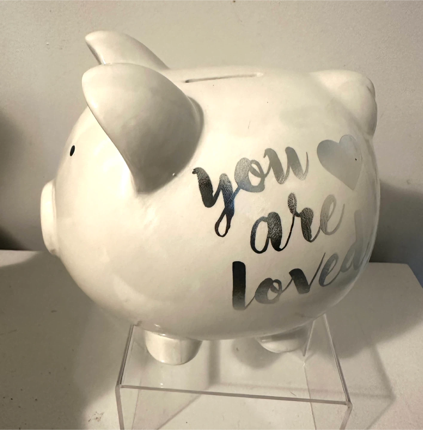 White Ceramic Piggy Bank - "you are loved"