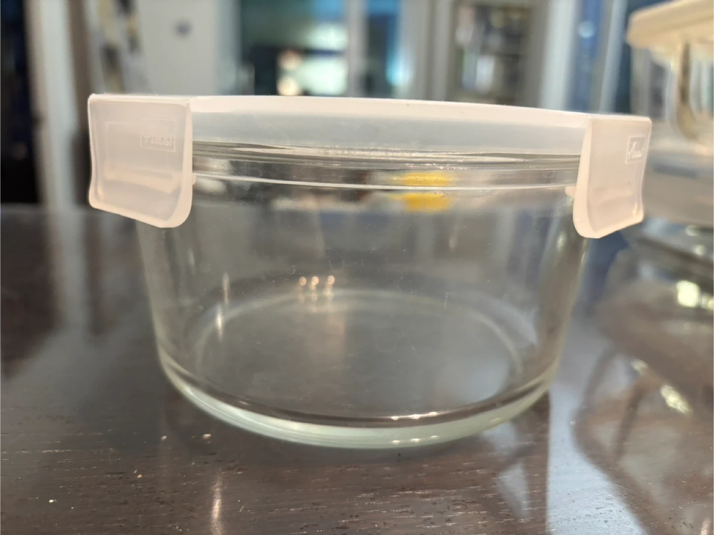 Selling a round glass storage container. It's in used condition and ready for a new kitchen!