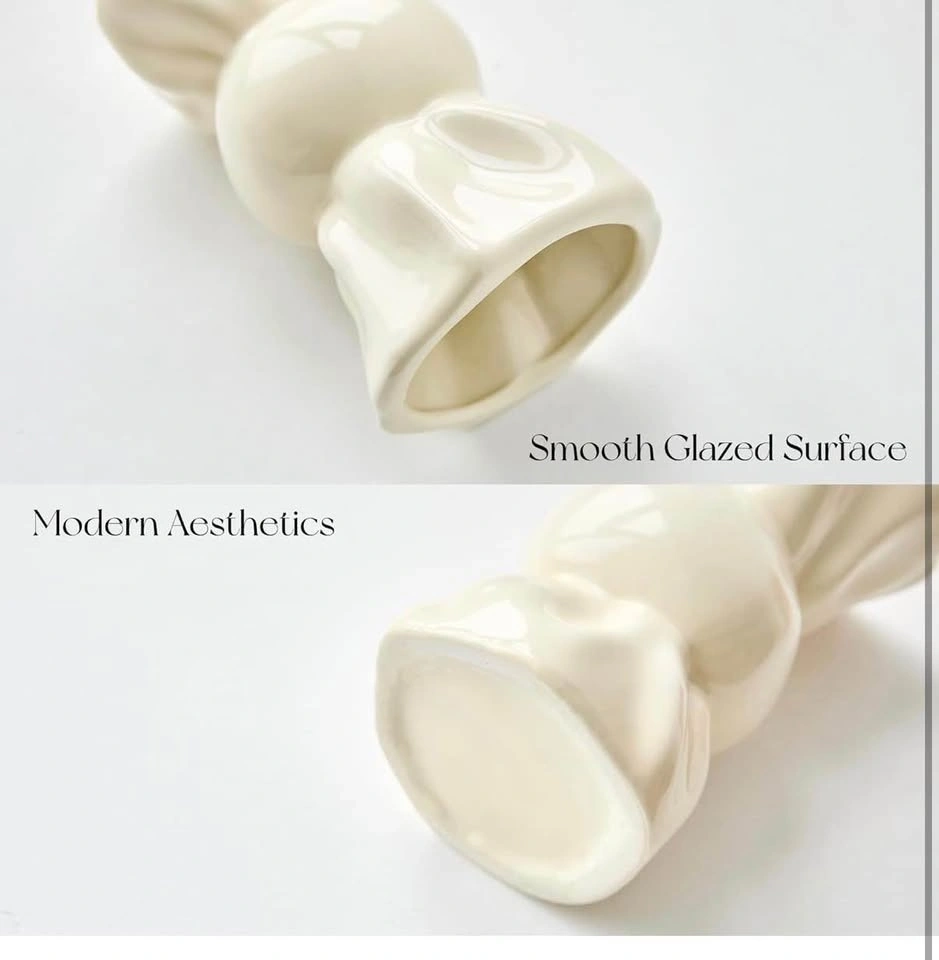 Modern Cream Ceramic Vase Hourglass Shape