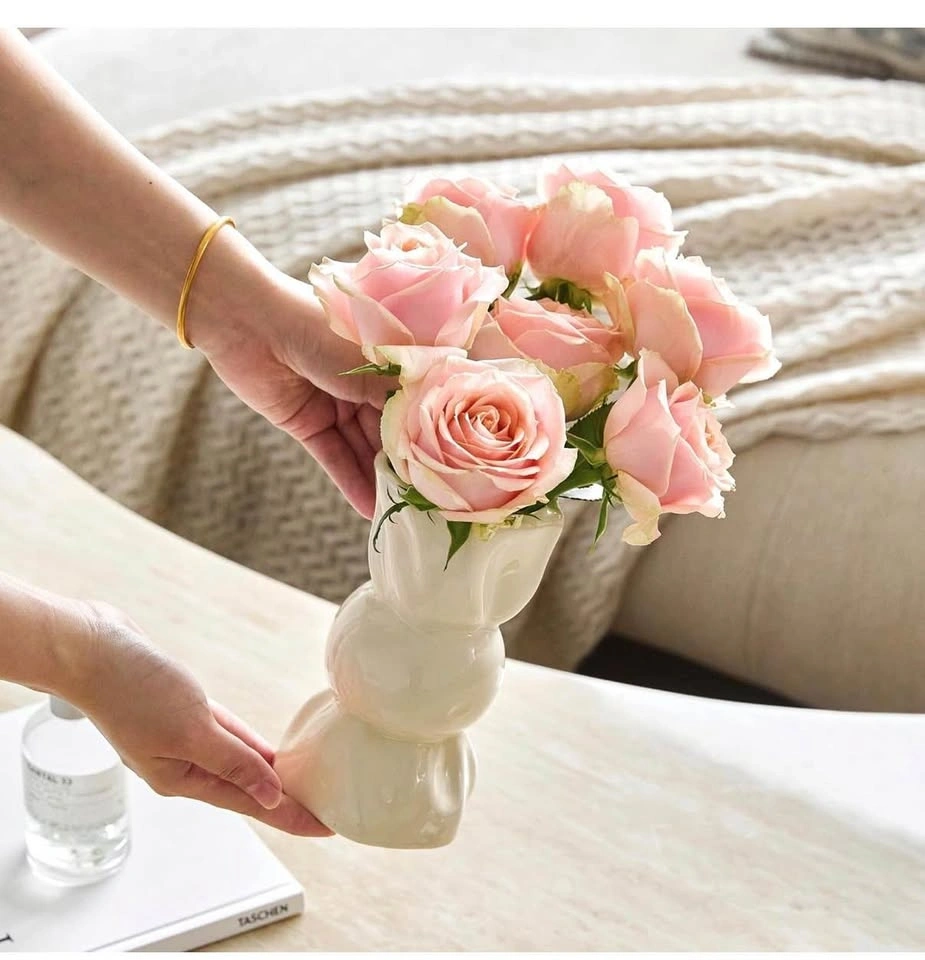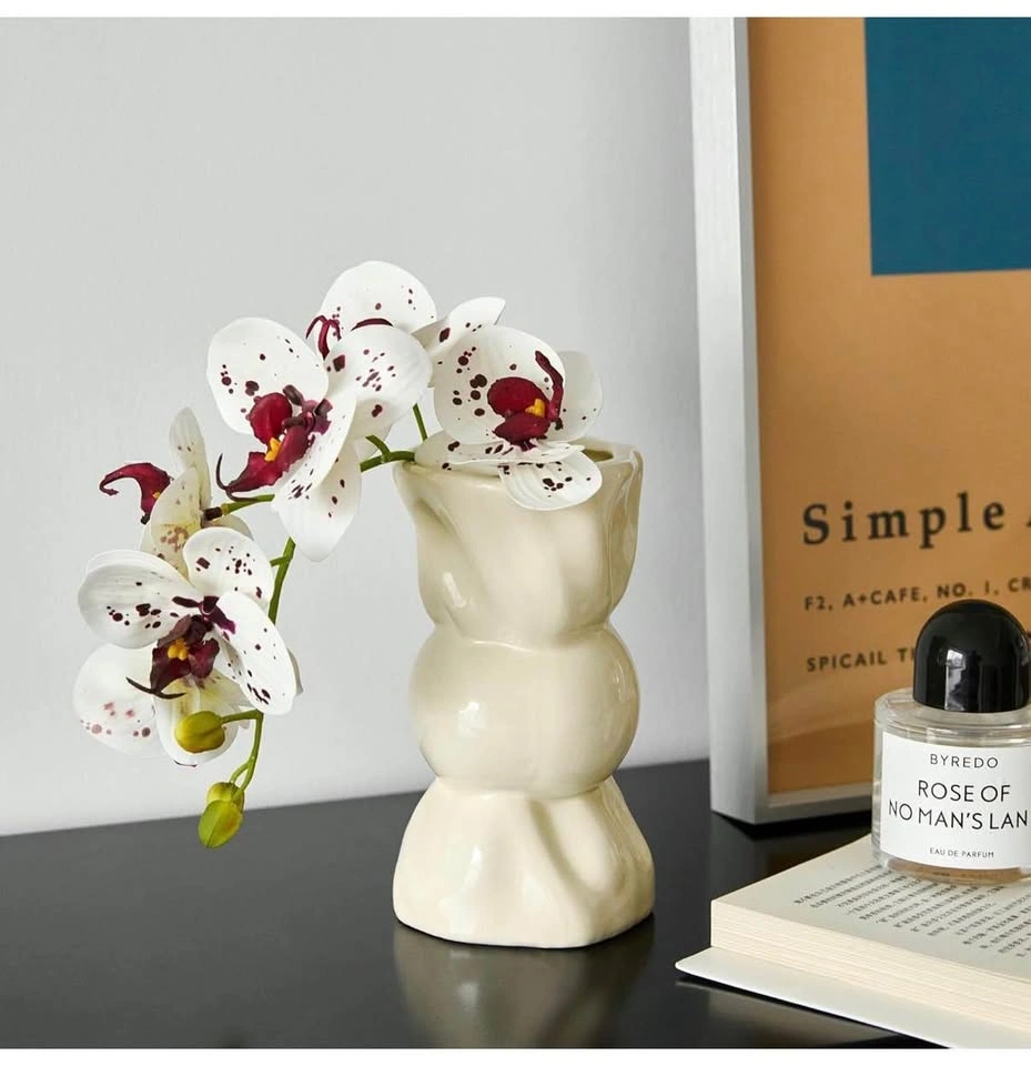 Modern Cream Ceramic Vase Hourglass Shape